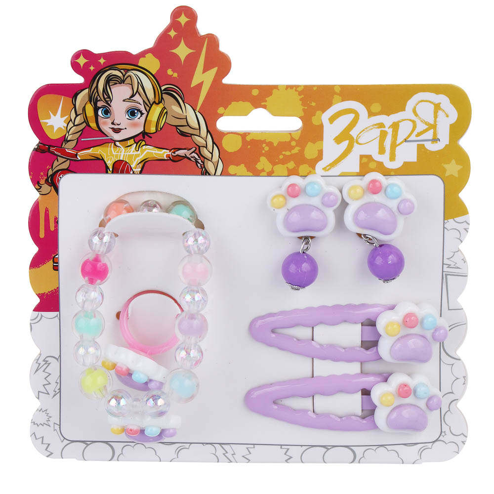 BY Русские супергерои Набор детской бижутерии: браслет, клипсы, кольцо, заколки клик-клаки 2шт,3диз.