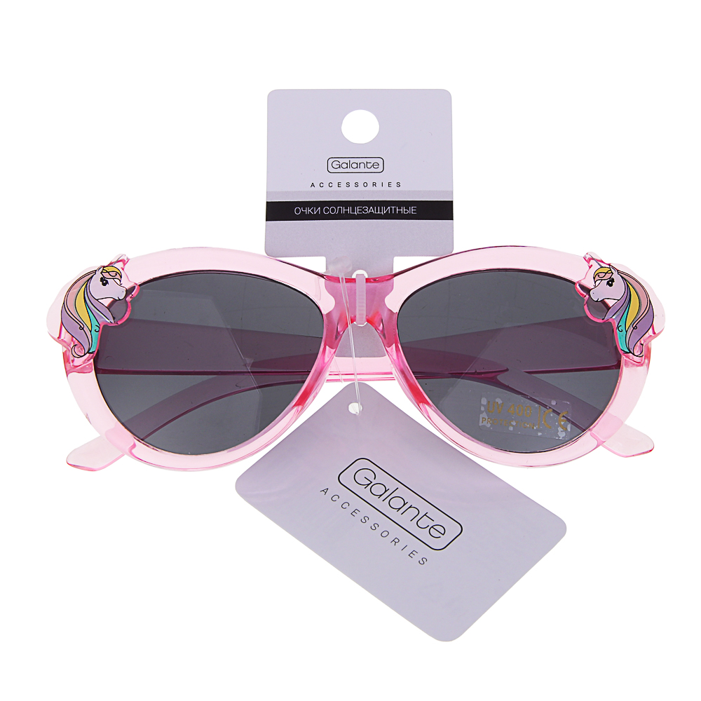 Детские солнцезащитные очки GALANTE в пластиковой оправе, 123x40 мм, с уровнем защиты UV 400 – это летний аксессуар для девочки, который эффективно защитит глаза от вредного воздействия ультрафиолетовых лучей, а также сделает комфортным пребывание на улице в солнечную погоду. Очки имеют стильный дизайн с привлекательным декором, прекрасно сочетаются с любой одеждой, делая летний образ выразительным и ярким. Комфортно сидят и не соскальзывают с переносицы. 3 цвета в ассортименте.