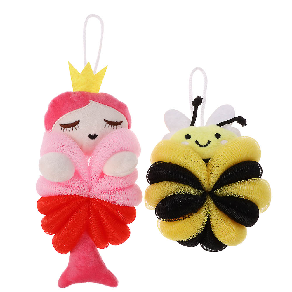 ЮL Мочалка банная для тела, полиэтилен, полиэстер, 50гр, 2 дизайна, МС24-04
