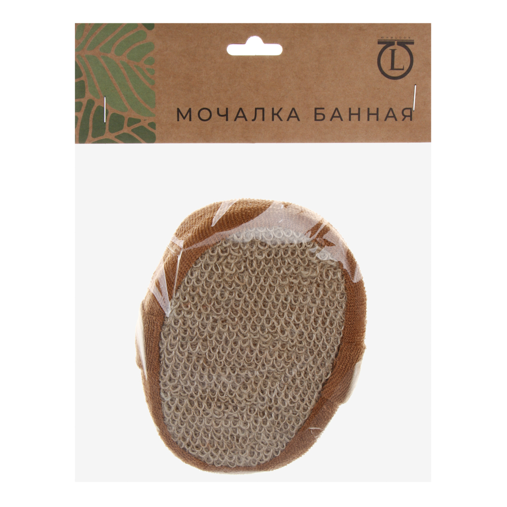 ЮL Мочалка банная объемная овальная на поролоне, рами, хлопок, 14,5х11х4,5см, 3 цвета, МЭ24-01