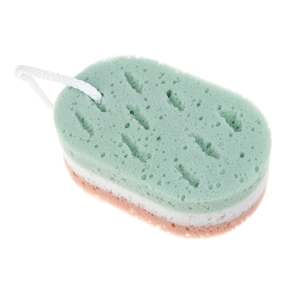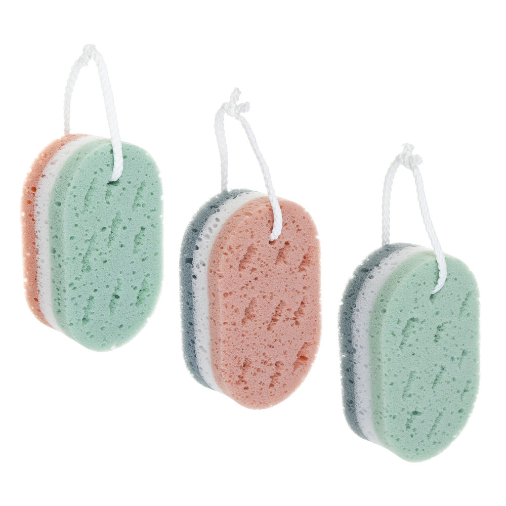 ЮL Мочалка губка поролоновая наборная сэндвич с подвесом, полиуретан, 15,5х9,5х5см, 3 цвета, МС24-01
