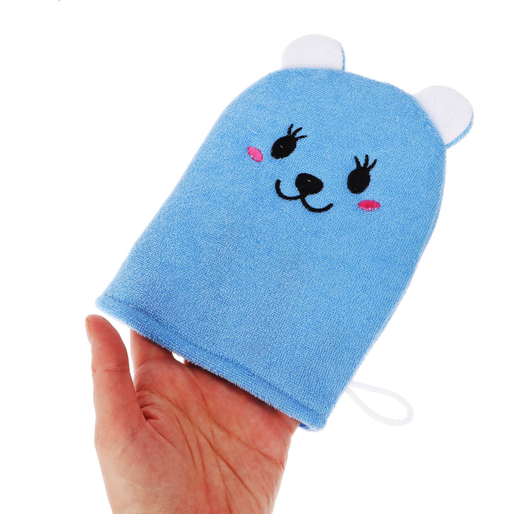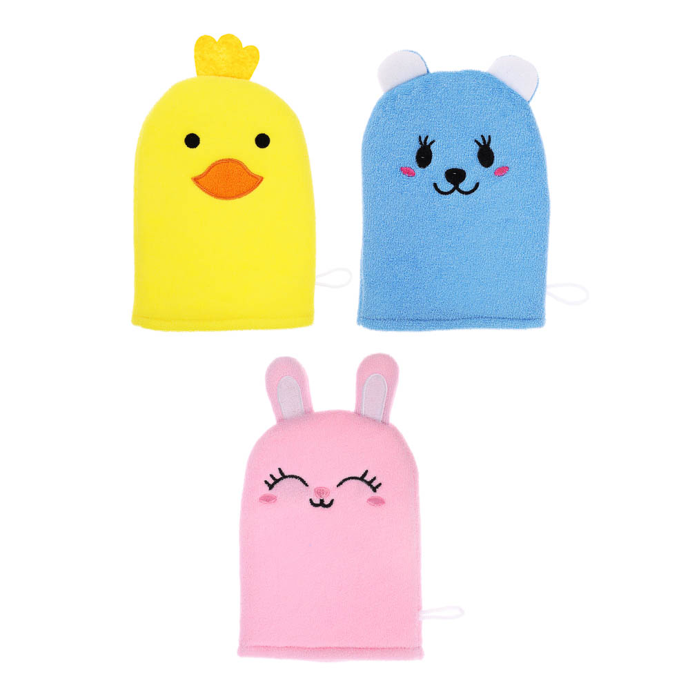 ЮL Мочалка рукавичка для ванны и душа в виде зверюшек, полиэстер, 18х13см, 3 дизайна, МС24-08