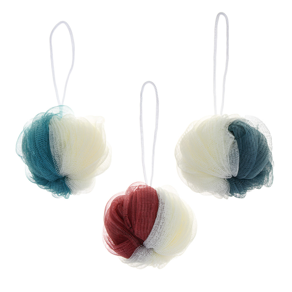 ЮL Мочалка шар хризантема с подвесом, полиэтилен, 40гр, 3 цвета, МС24-03