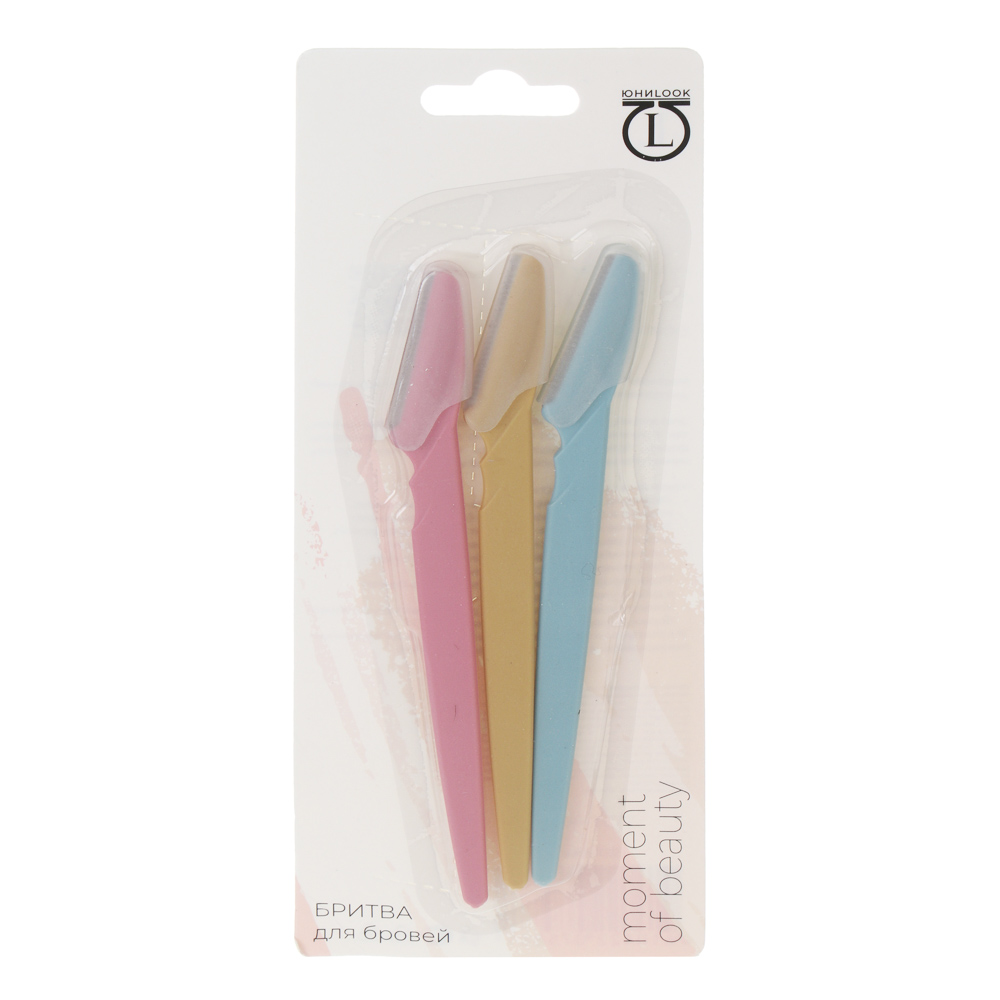 Бритва для бровей 3 шт тм ЮНИLOOK, пластик, металл, 14см, разноцветные