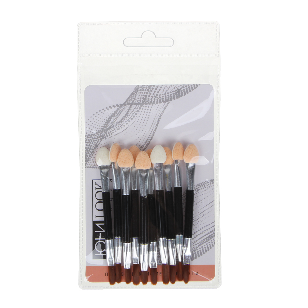 ЮНИLOOK Аппликатор двухсторонний со спонжем и кистью 10 шт, пластик, латекс, ворс нейлон, 7,5см