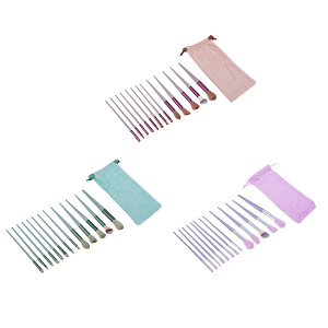 Кисти для визажа 13 шт в чехле ЮНИLOOK , пластик, металл, иск.ворс, полиэстер, 14,5-17,5 см, 3 цвета