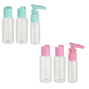 Набор для косметики дорожный 6 предметов (2 шт–50мл,1 шт–30мл, 3 шт–10гр) тм ЮНИLOOK, пластик, 2 цв.
