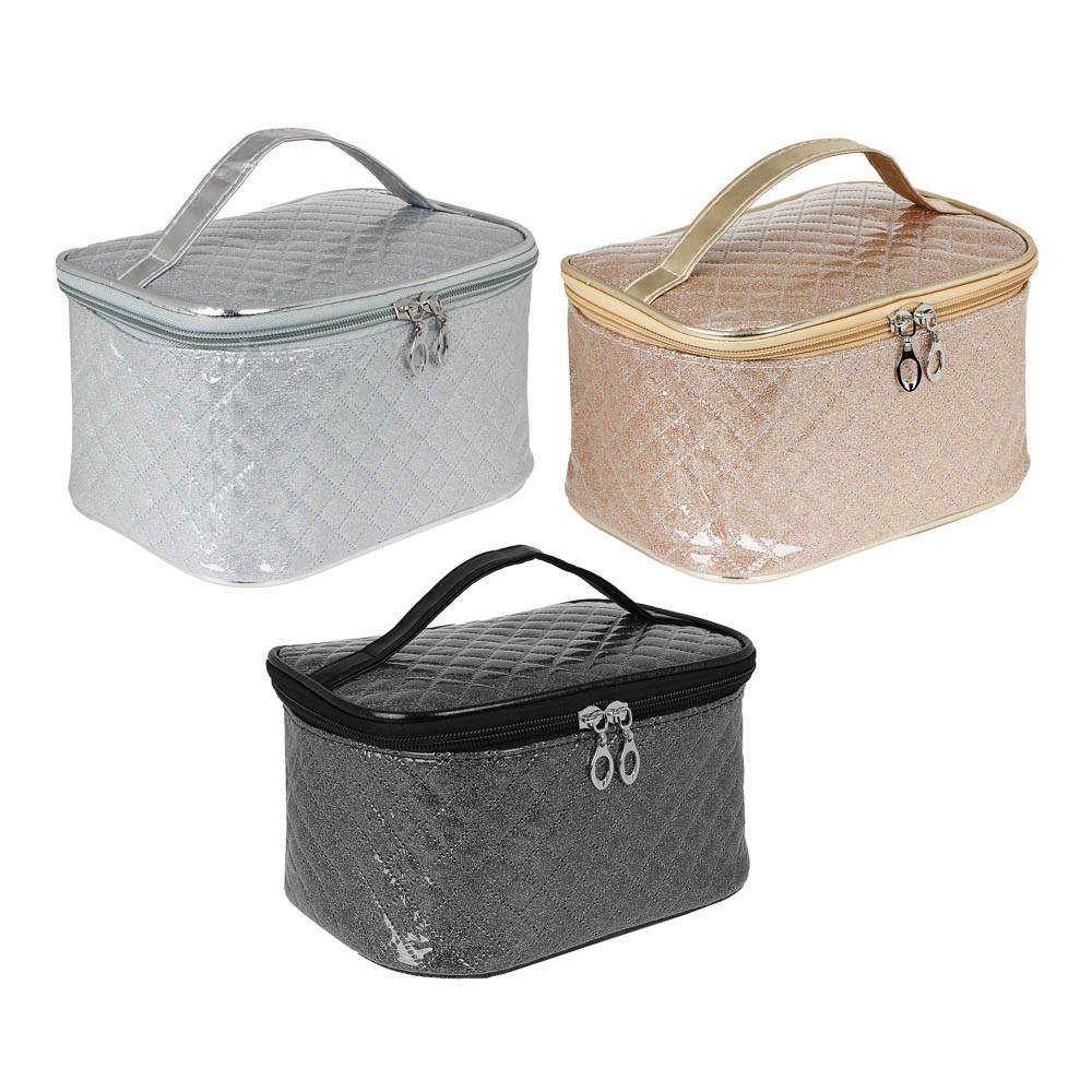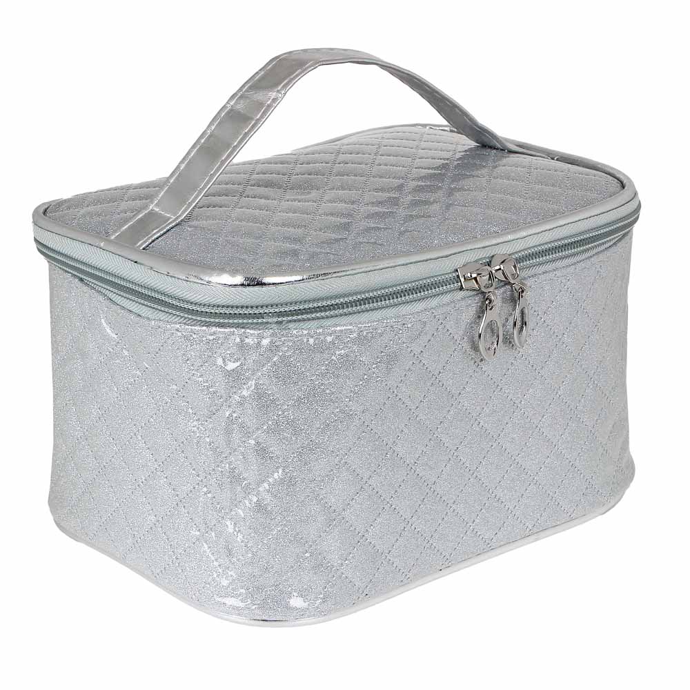 Косметичка от бренда ЮниLook – незаменимый аксессуар для любой девушки. Объемная косметичка поможет навести порядок на туалетном столике и организовать хранение косметики и средств для макияжа. Органайзер изготовлен из качественной гладкой искусственной ткани с прострочкой. Крышка закрывается на молнию с двумя бегунками, за счет чего можно увидеть всё содержимое и быстро найти необходимую вещь. Удобная ручка позволит с легкостью переносить косметичку с места на место, брать с собой в путешествие. Оптимальные размеры косметички идеально подходят для того, чтобы взять с собой всё необходимое, но при этом она не занимает много места. На выбор три варианта расцветки: черный металлик, золотистая или серебристая.