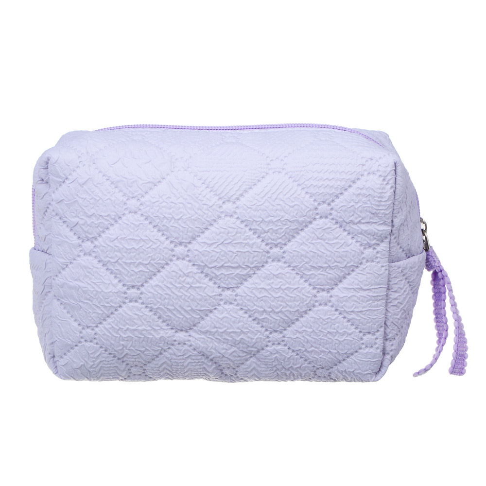 Косметичка стеганая дутая ЮL «Килт», из 100% полиэстера, размер 17х12х8 см – это элегантный аксессуар для истинных ценителей стиля. Верх имеет необычную стеганую текстуру с рельефным узором, смотрится оригинально и эстетично. Предусмотрено одно вместительное отделение на молнии для косметики, дорожных аксессуаров, парфюма и украшений. Косметичка сохраняет форму при наполнении, легко очищается от загрязнений, устойчива к износу и легко помещается в сумку или в чемодан. 2 цвета в ассортименте: белый и светло-сиреневый.