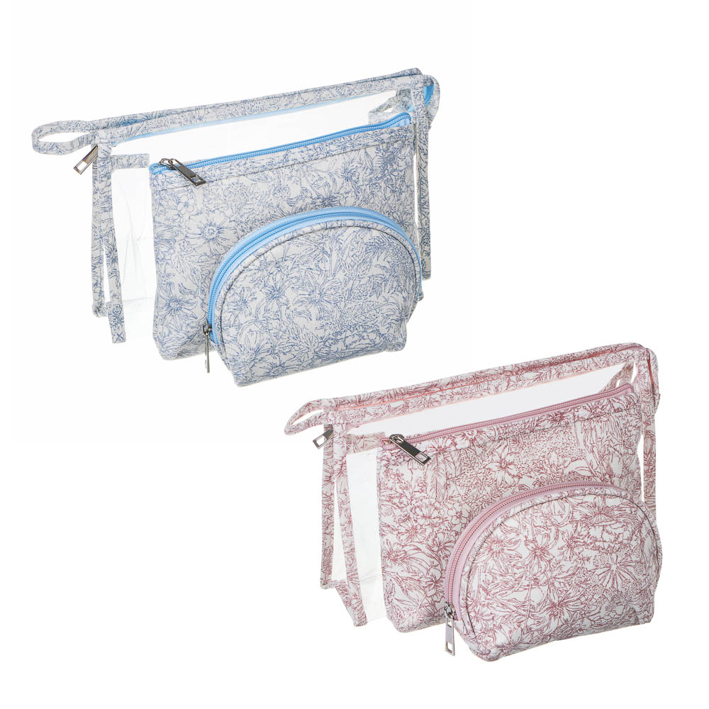 ЮL Косметички в наборе 3 шт Флора, ПВХ, ПЭ, 25х16х8см/20х14х3см/15х10х6см, 2 цвета