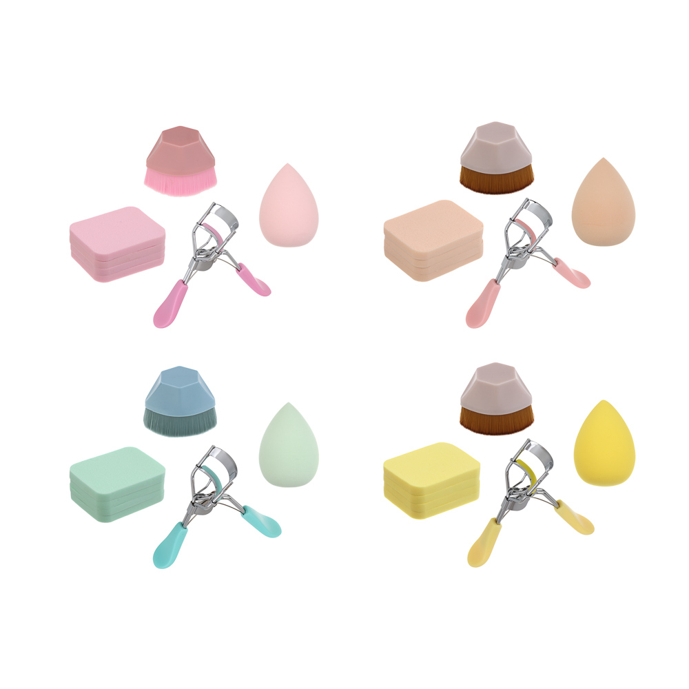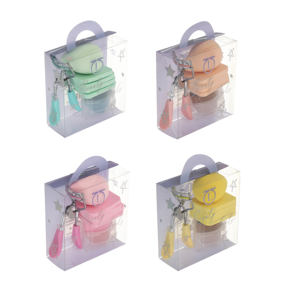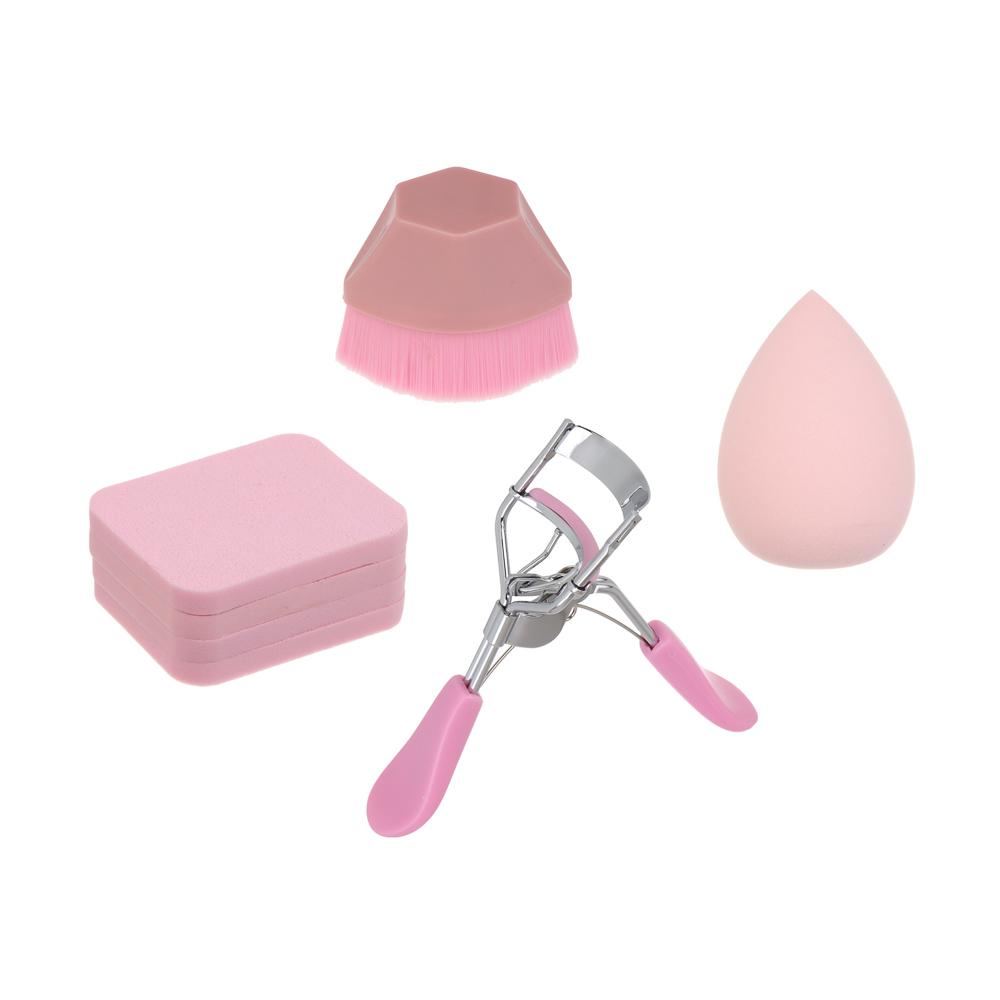 Набор для визажа 7 шт тм ЮНИLOOK (керлер, кисть плоская для тона, спонжи 4шт, блендер 1шт), 4 цвета