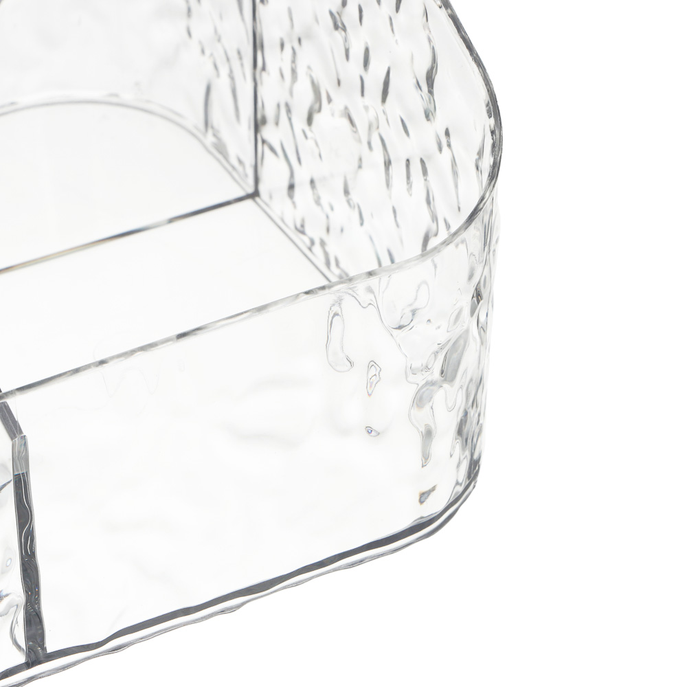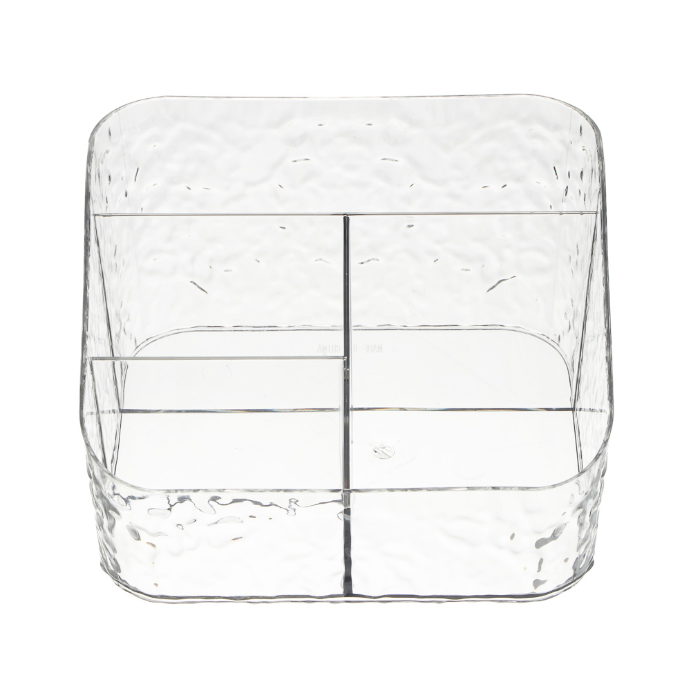 Откройте для себя идеальное решение для организации косметических принадлежностей — стильный органайзер Ice от бренда ЮНИLOOK! Этот элегантный аксессуар станет вашим верным помощником в создании безупречного порядка на туалетном столике или в ванной комнате. Компактные, но вместительные размеры 17,5х15х11 см позволяют разместить органайзер даже в небольшом пространстве, при этом четыре отдельных отделения обеспечивают удобное хранение всех необходимых косметических средств. Прозрачный PET-пластик не только позволяет мгновенно находить нужные предметы, но и демонстрирует превосходное качество исполнения. Благодаря продуманной конструкции и утолщенным стенкам, органайзер надежно защищает содержимое от повреждений. В нем удобно хранить как декоративную косметику, так и средства по уходу за кожей — кремы, сыворотки, лосьоны и другие бьюти-продукты.