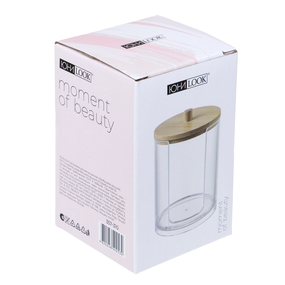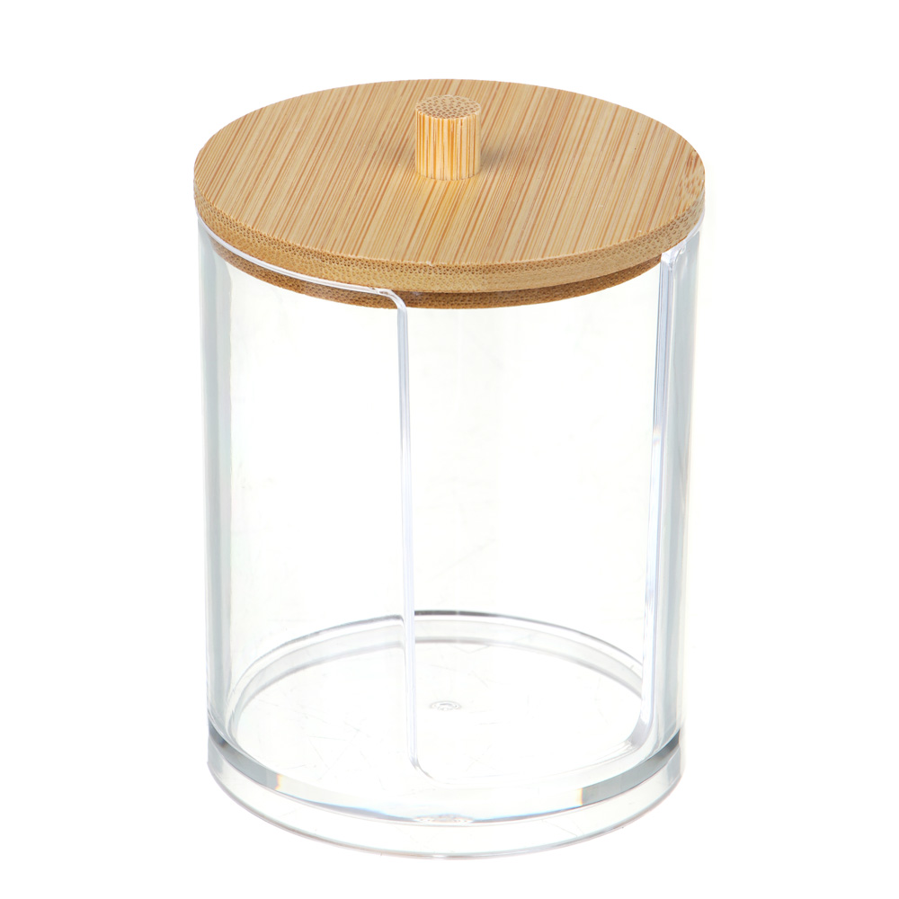 ЮНИLOOK Органайзер для ватных дисков с бамбуковой крышкой, 8,5x7см, PS, бамбук, ВЗ24-25