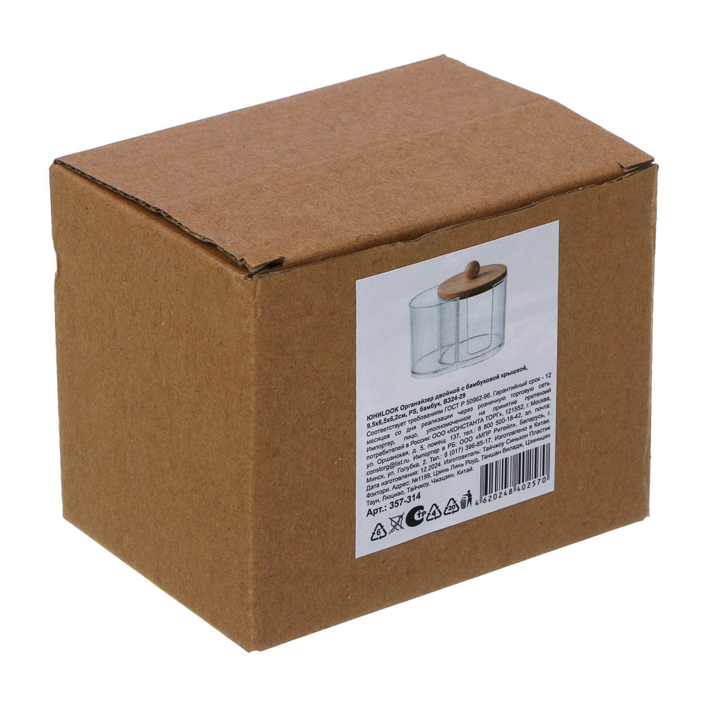 ЮНИLOOK Органайзер двойной с бамбуковой крышкой, 13,5х7,6х10,2см, PS, бамбук, ВЗ24-29