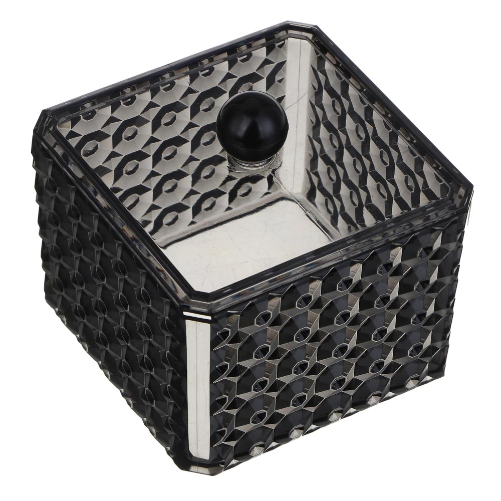 ЮНИLOOK Органайзер косметический прозрачный с крышкой, 9,5х9,5х6,5см, PS, черный, ВЗ24-30