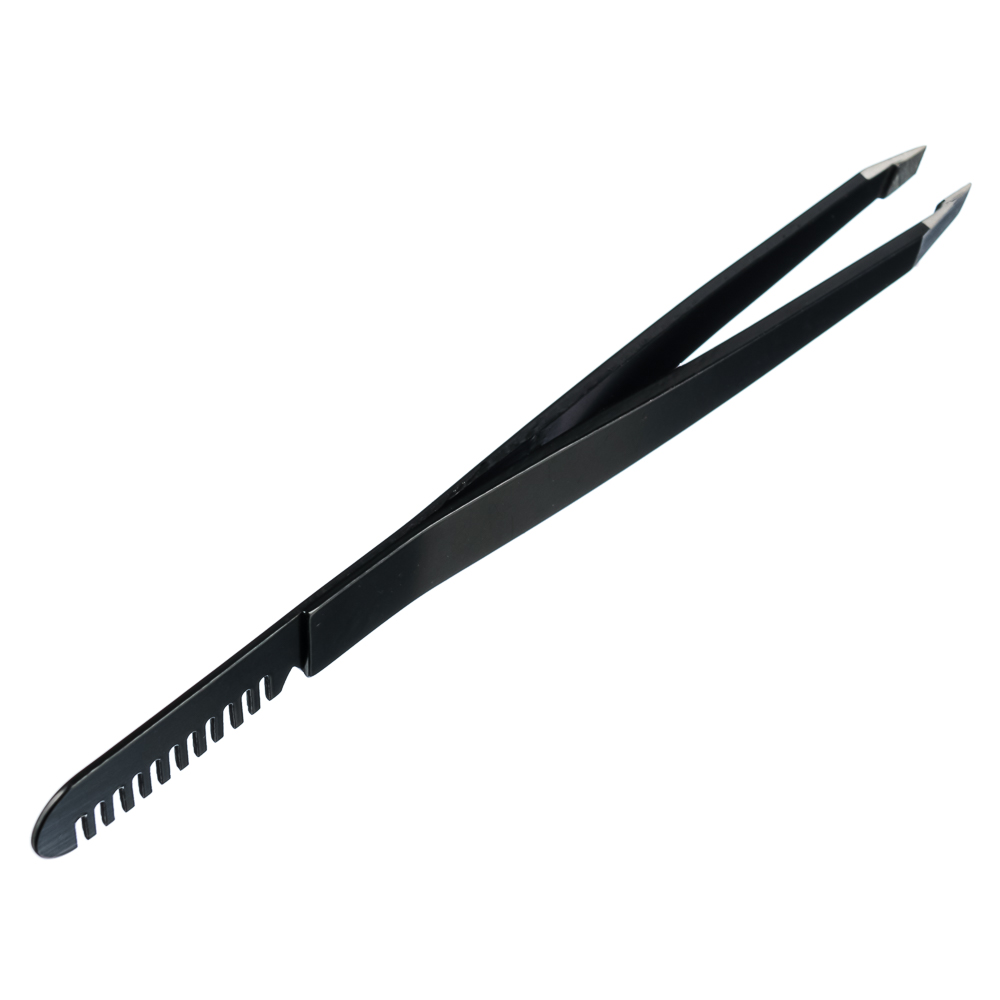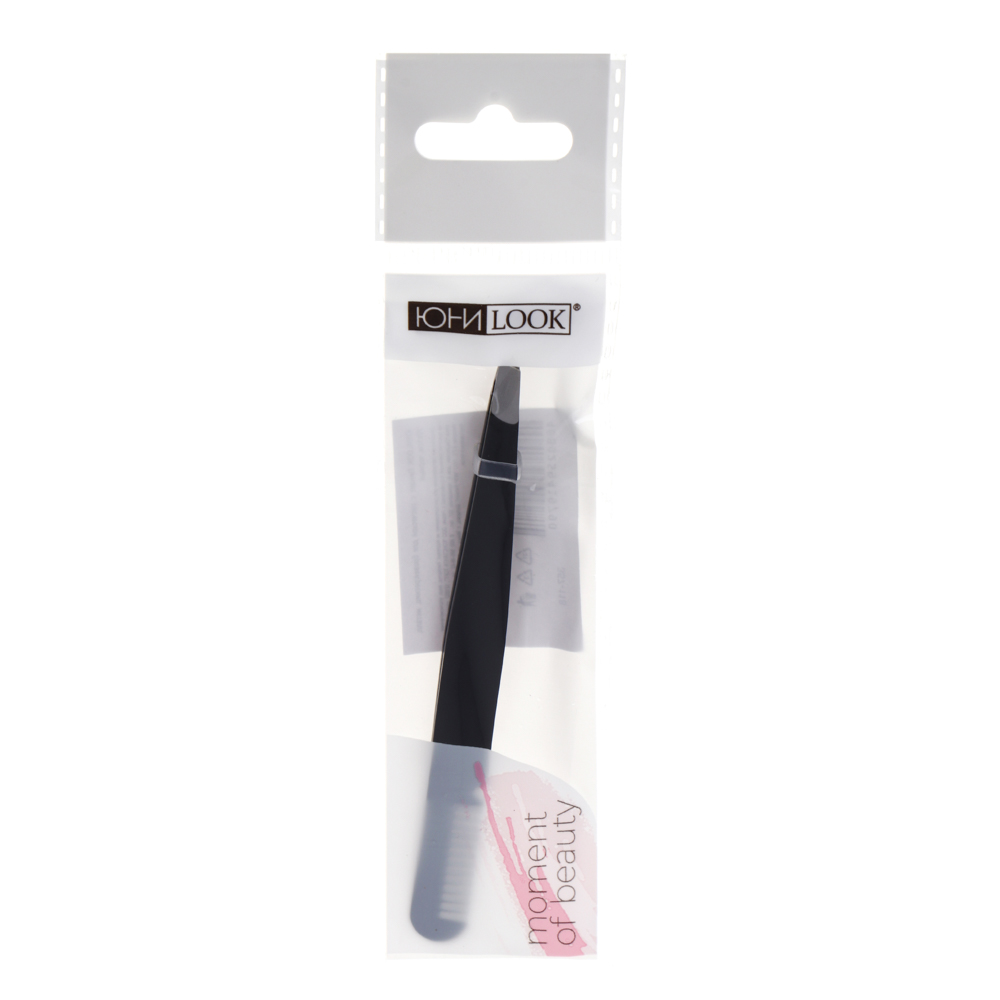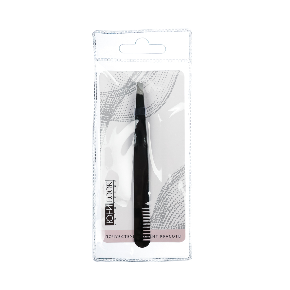 ЮНИLOOK Пинцет с расческой для бровей/ресниц, металл, 10х1см, черный