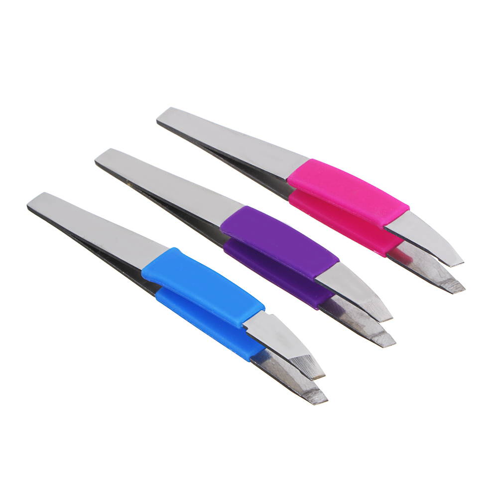 ЮНИLOOK Пинцет для бровей с силиконовыми держателями, нерж.сталь, 9,3см, 3 цвета