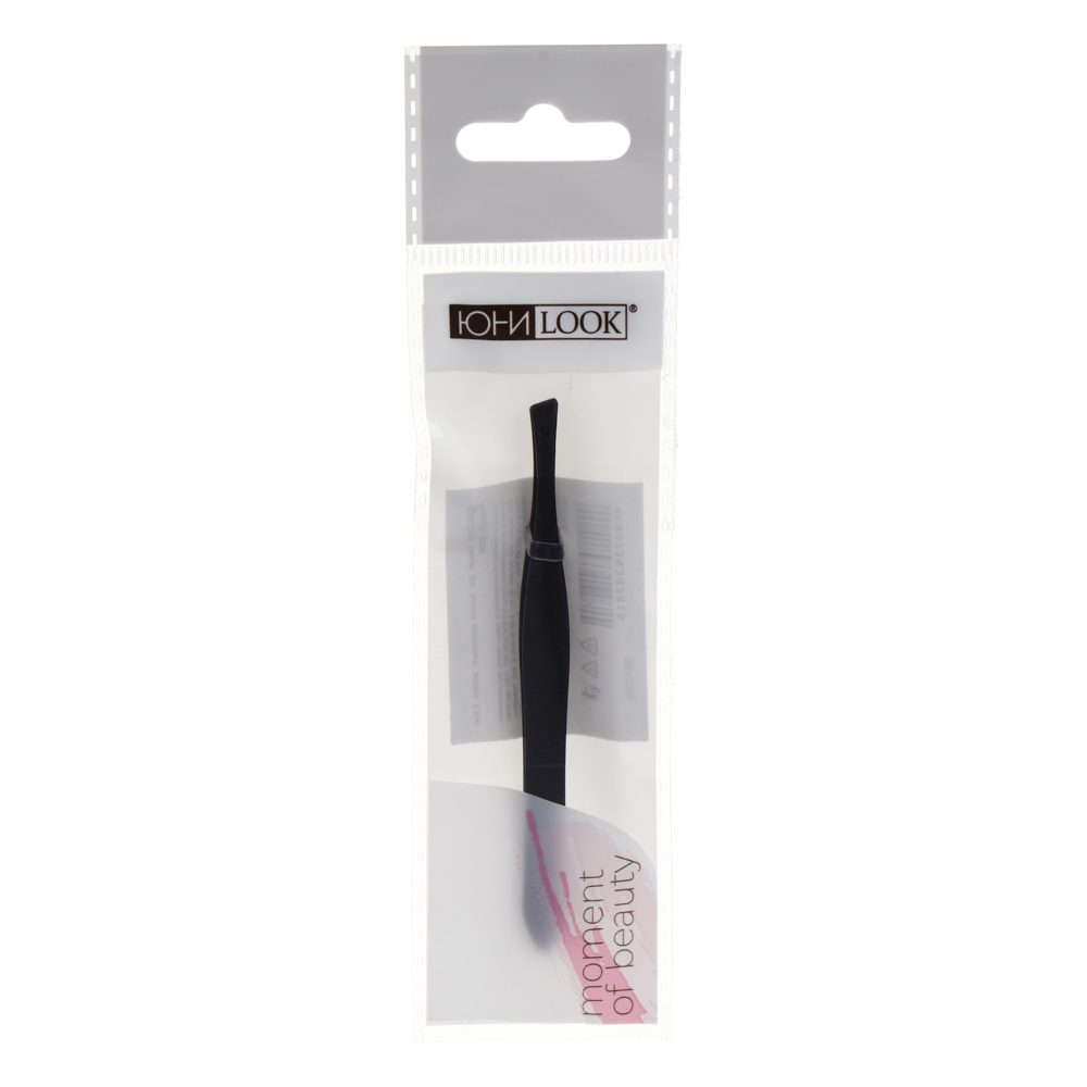 ЮНИLOOK Пинцет для бровей скошенный, металл, 8,5см, черный, 3B494