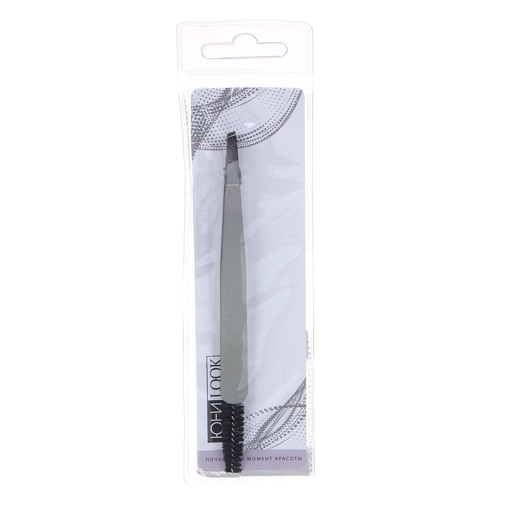 ЮНИLOOK Пинцет с щеточкой двухсторонний, сталь, 12,4см