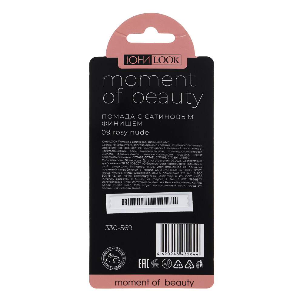 Помада с сатиновым финишем ЮНИLOOK, 3,5 гр. – это линейка из 4 роскошных оттенков, которые подходят как для повседневного дневного, так и для праздничного вечернего макияжа. Комфортно наносится, имеет приятную кремовую текстуру. Сочетает в себе насыщенную пигментацию и уходовые свойства. Эффективно увлажняет, создавая эффект здоровых и ухоженных губ. Гладко ложится, не скатывается и не собирается в уголках губ. Сатиновый финиш дает естественный блеск с эффектом объема без липкости. Доступные оттенки: 02 beige nude, 09 rosy nude, 08 peach nude, 11 caramel nude.