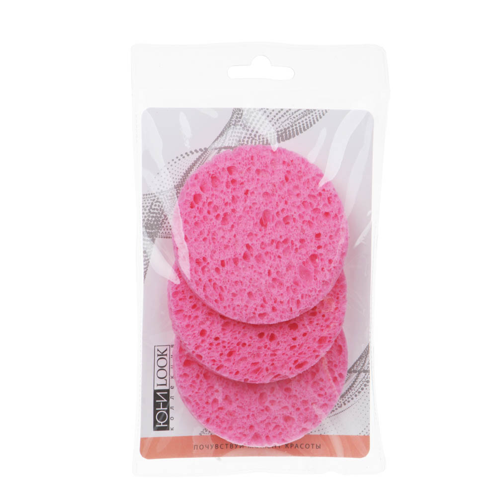 ЮНИLOOK Набор спонжей для умывания 3шт, целлюлоза, 7x0,8см