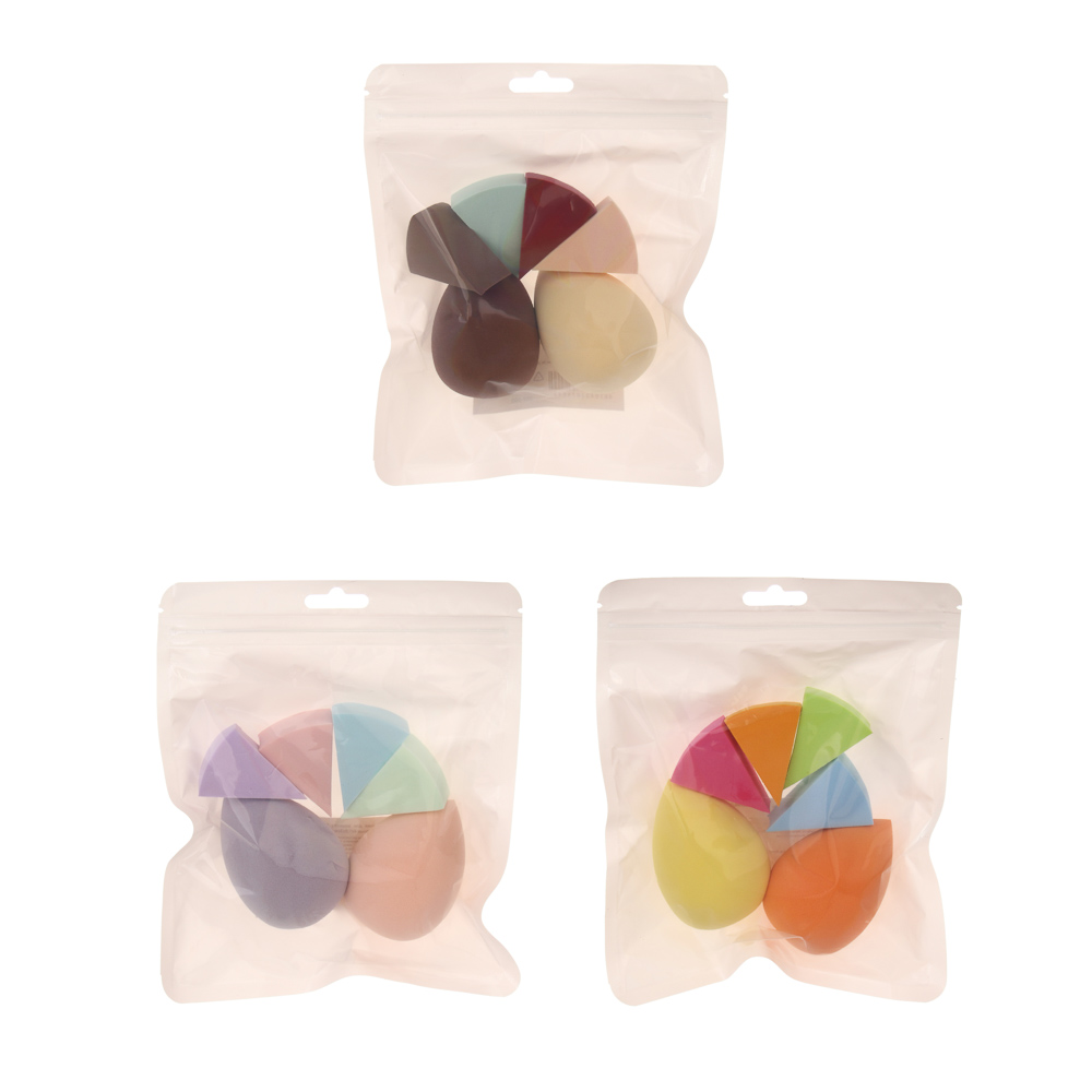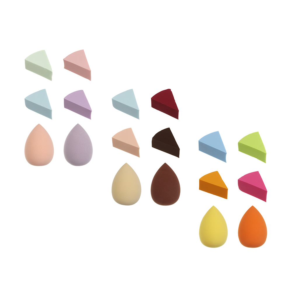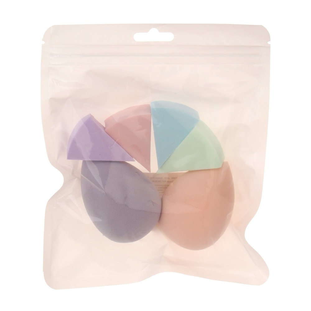 Набор спонжи для макияжа 6 шт тм ЮНИLOOK (блендер 6х4см 2 шт, спонж 4х1,8х3см 4 шт), 3 цвета