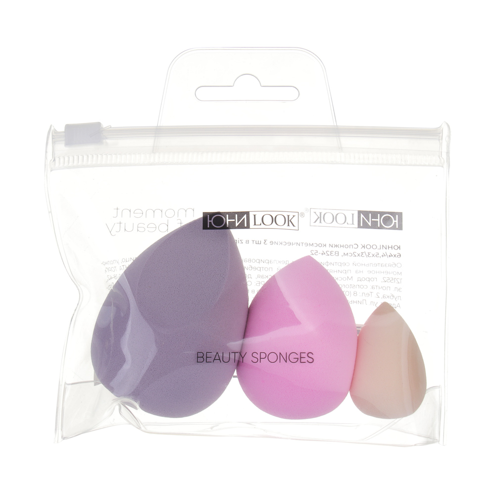 ЮНИLOOK Спонжи косметические 3 шт в zip-пакете, полиуретан, 6х4/4,5х3/3х2см, ВЗ24-52