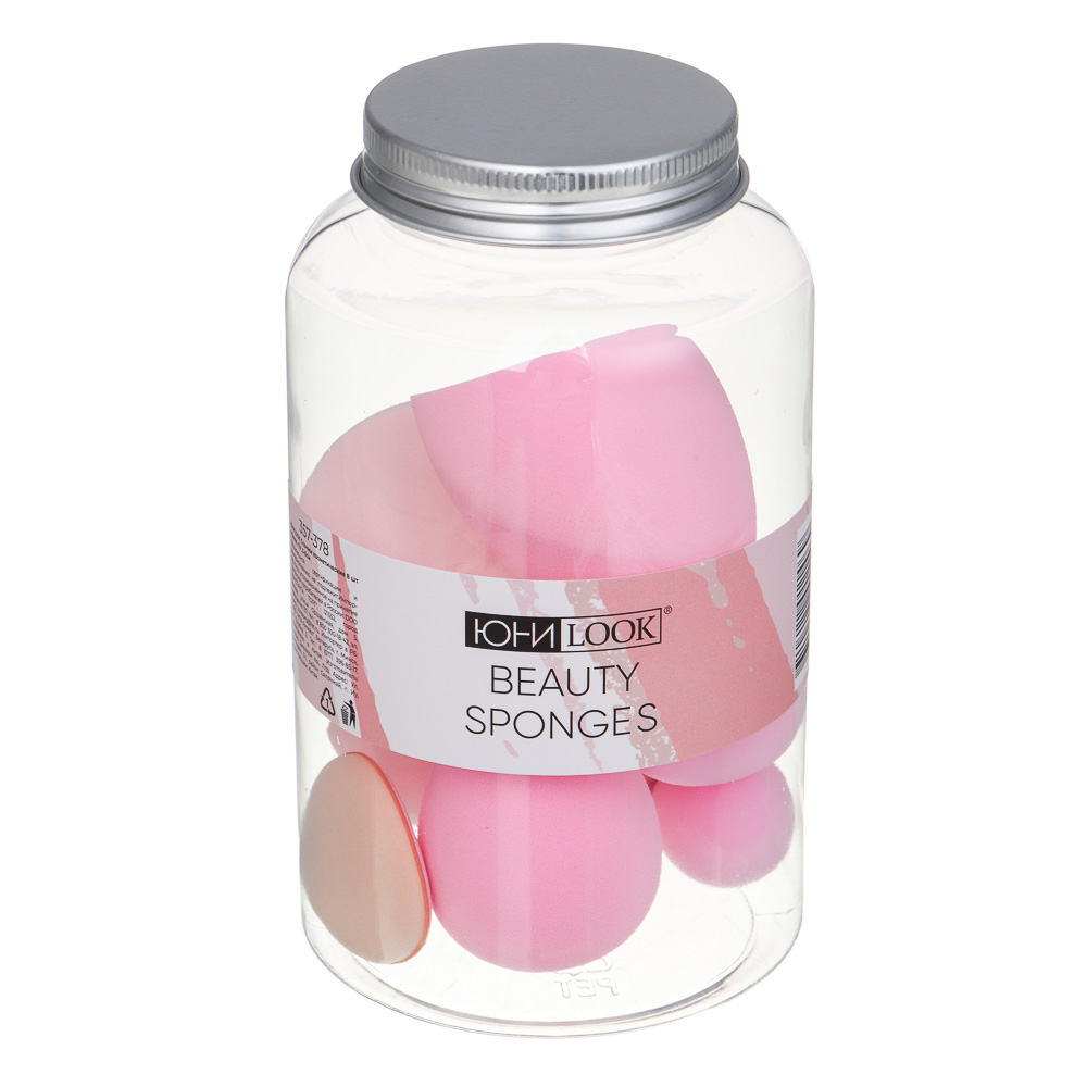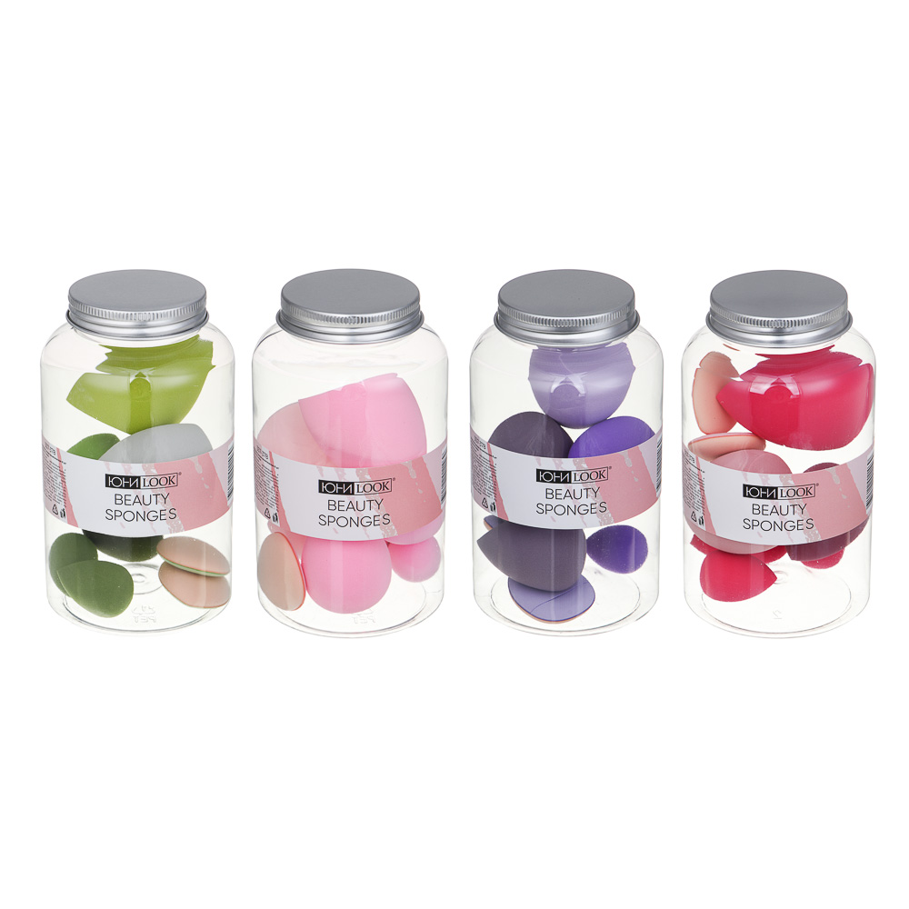 ЮНИLOOK Спонжи косметические 8 шт в банке, ПУ, 3-6см, 4 сочетания цветов