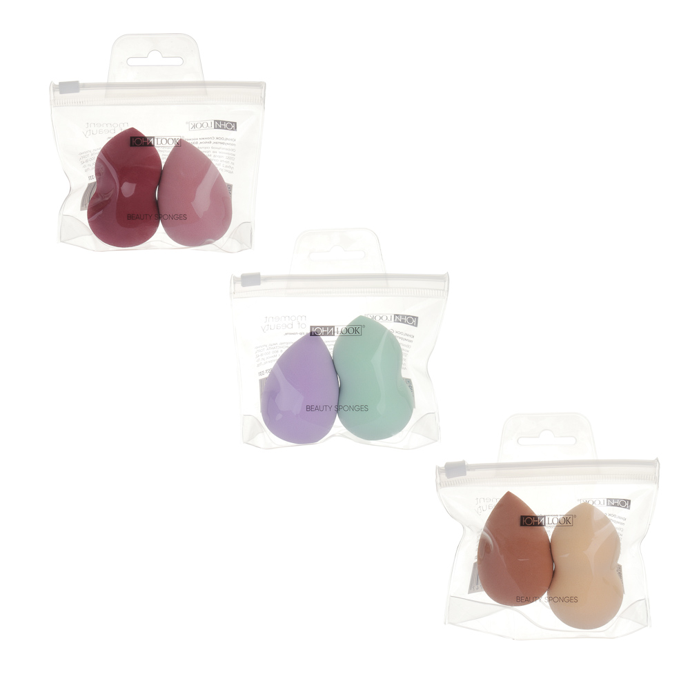 ЮНИLOOK Спонжи косметические разных форм 2 шт в zip-пакете, полиуретан, 6х4см, 3 цвета, ВЗ24-54