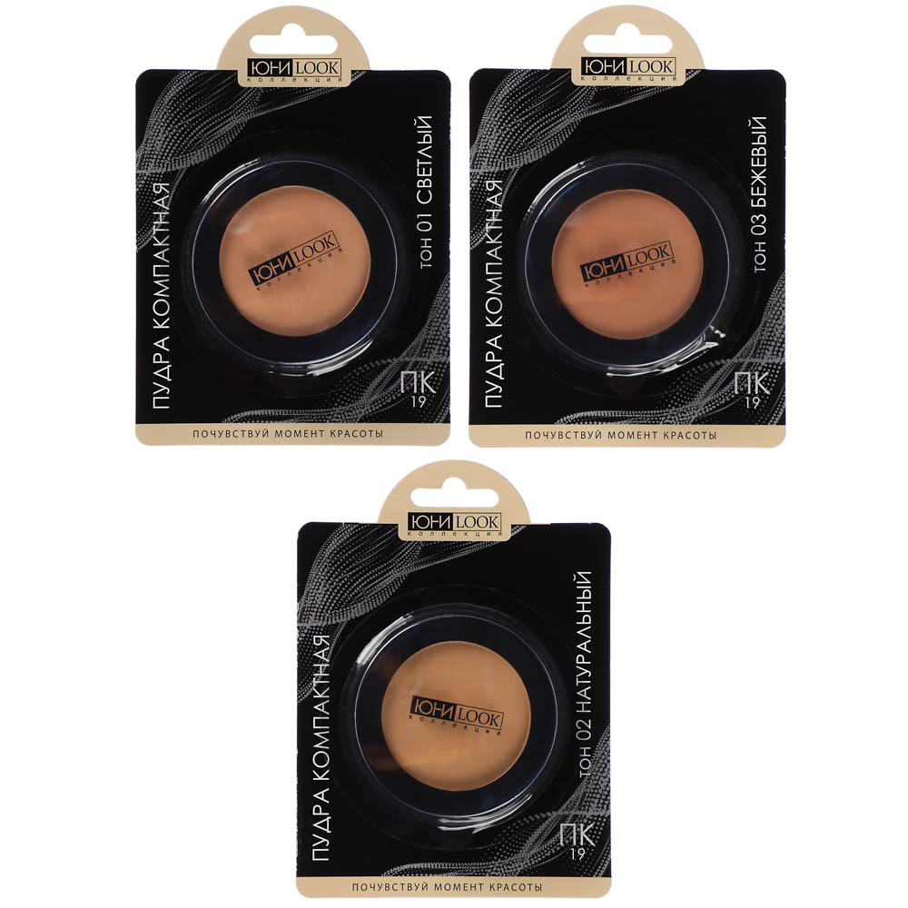 ЮНИLOOK Пудра компактная, 9,2 г, 3 тона, ПК-19