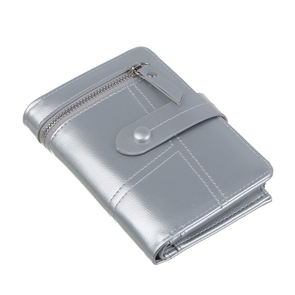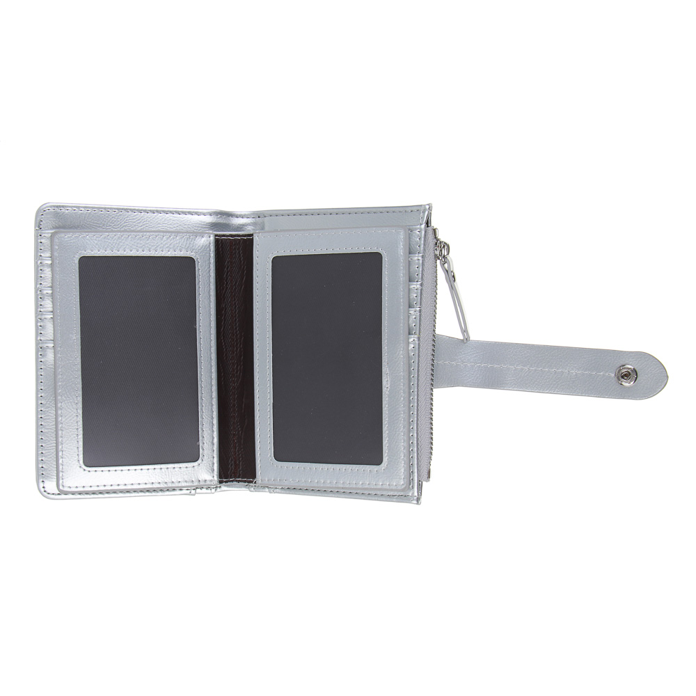 Женский кошелек ЮL Анзелия – безупречная организация и современный дизайн. Больше не нужно рыться в сумке в поисках нужной карты! Функциональный кошелек размером 14x10x3 см сочетает в себе внешнюю красоту и продуманную организацию: отделение для купюр, слоты для карт, кармашки для проездных билетов или удостоверений, а также вместительное отделение для мелочи на молнии. Изготовлен из высококачественного полиуретана с глянцевой отделкой. Надежная застежка на кнопке обеспечит безопасность ваших ценностей. Поставляется в стильной коробке – идеальный вариант для подарка.