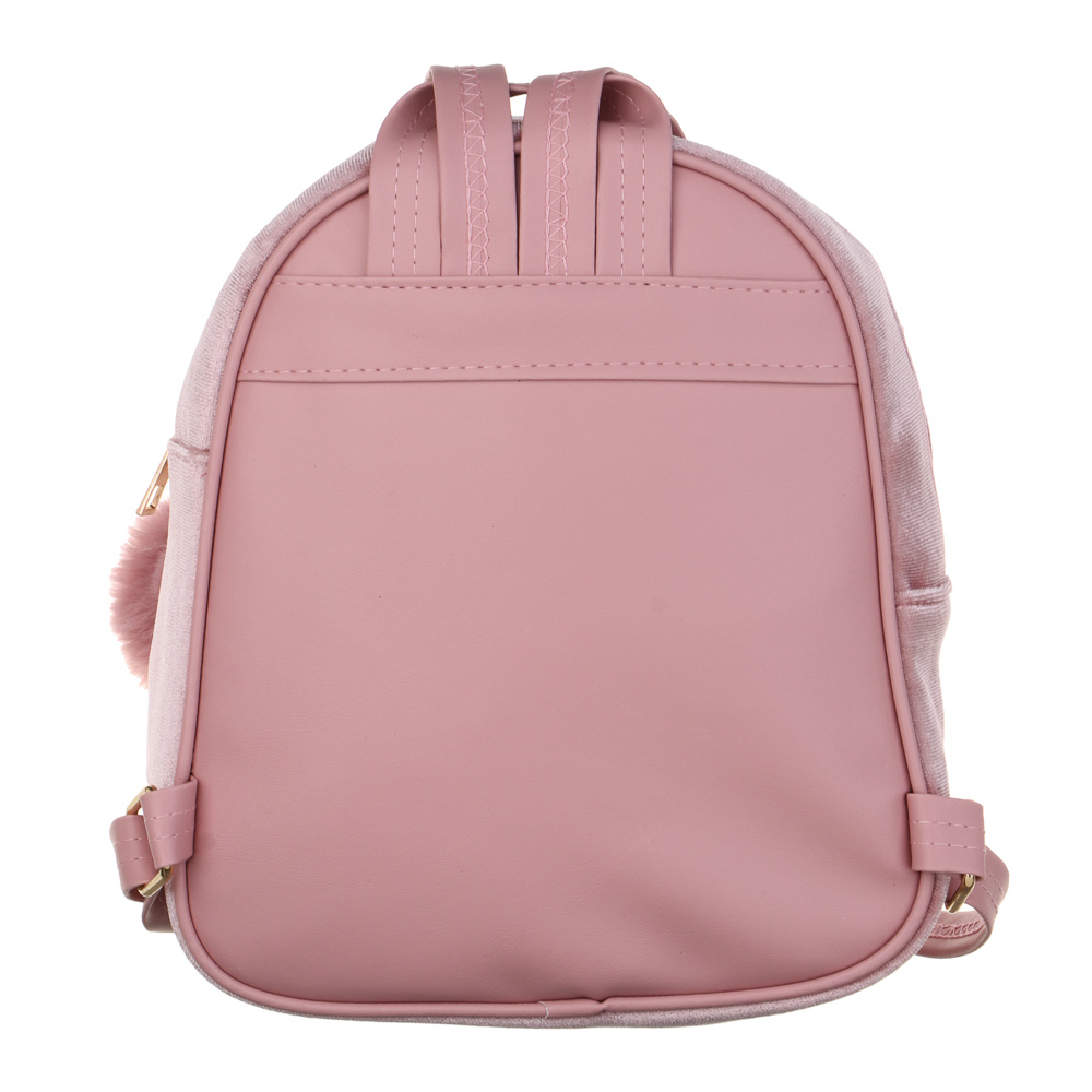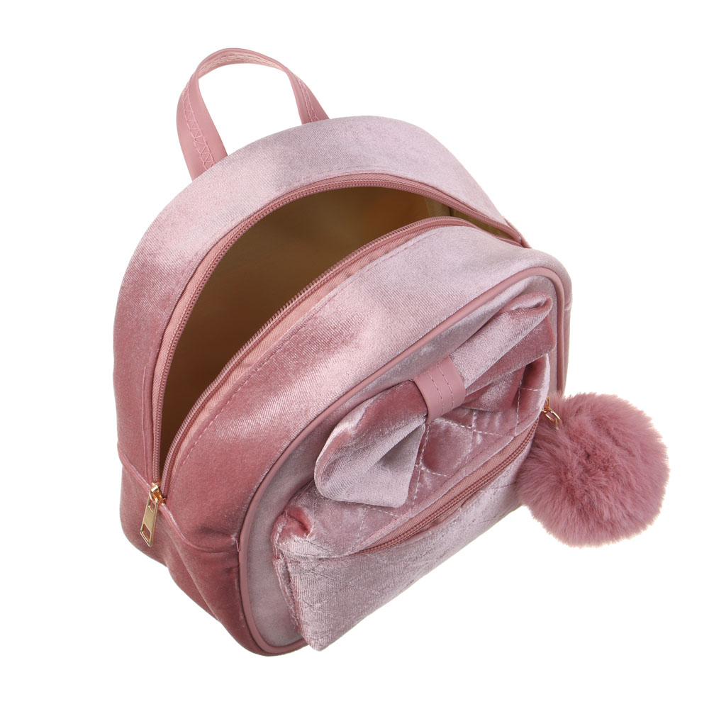 Очень необычный мини-рюкзак не оставит равнодушной маленькую принцессу. Мини-рюкзак 23х20х9 см с мягкой, приятной поверхностью пригодится детям в дороге или в детском саду. В него без труда поместится пакетик с соком, карандаши или любимые игрушки. Длина плечевых ремней регулируется в зависимости от роста крохи. Лёгкий аксессуар не создаёт дополнительной нагрузки на спину. При необходимости его можно подвесить за ручку, расположенную сверху. Рюкзачок декорирован ушками и стильным бантом.