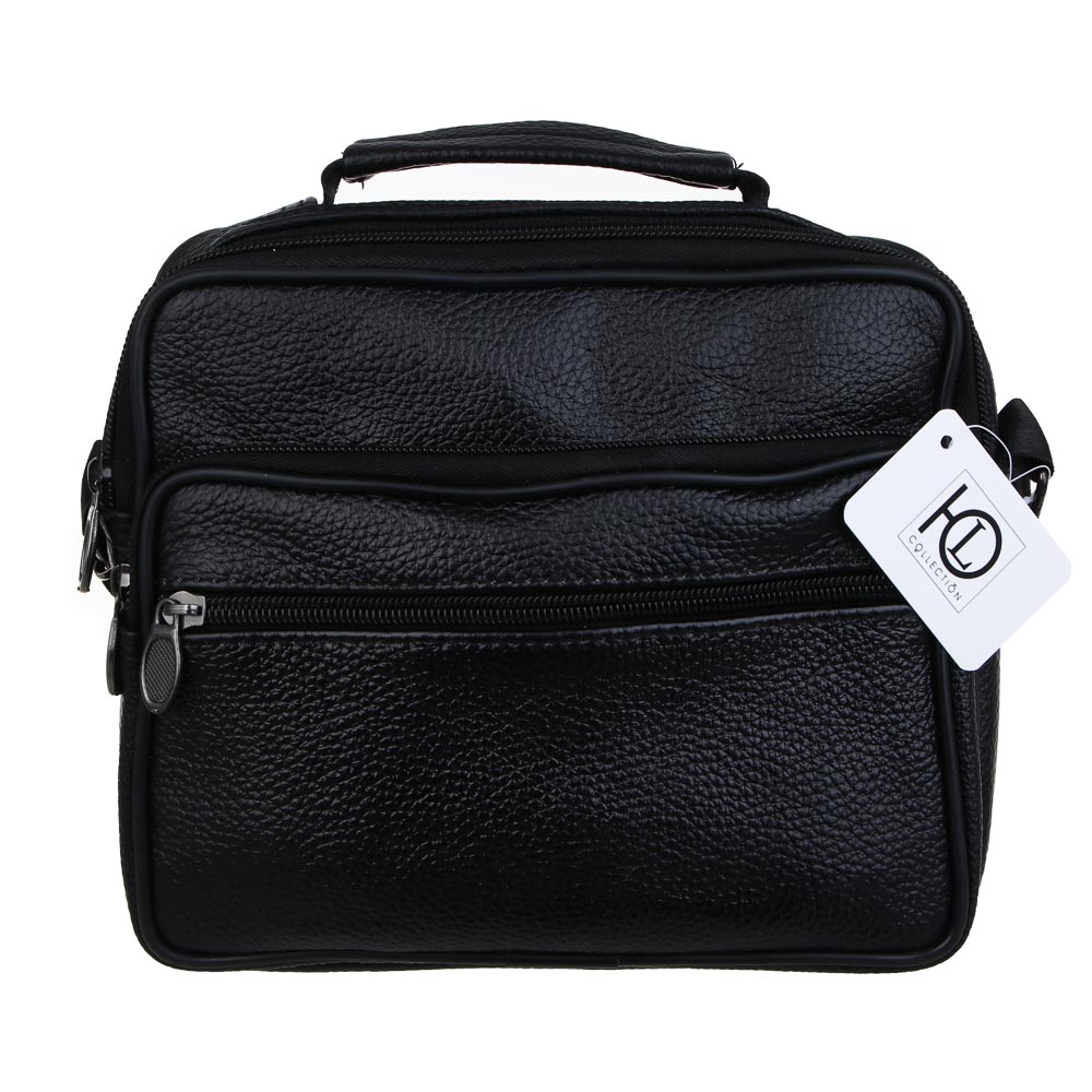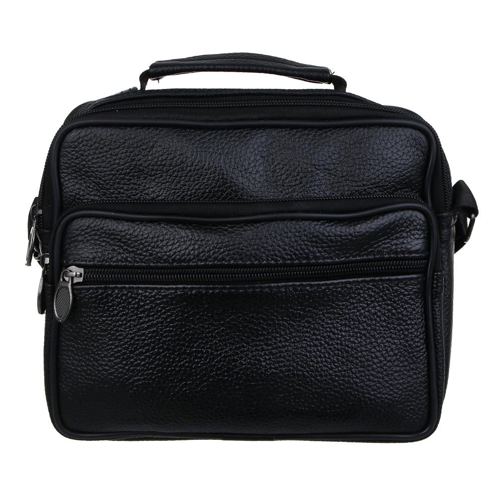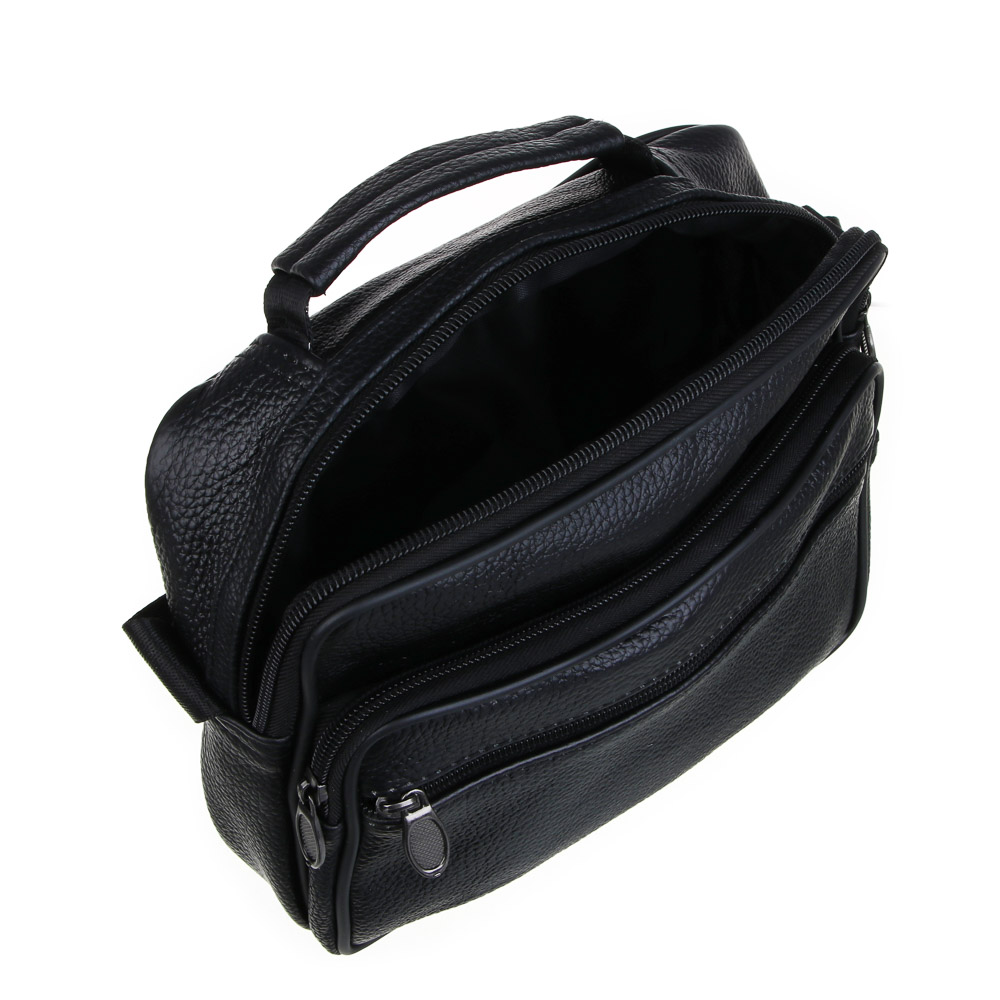 ЮL Драйв Сумка мужская на длинном ремне, 4 отделения, нат.кожа, ПУ, 22х18х8,5см, черный, КЖ24-71
