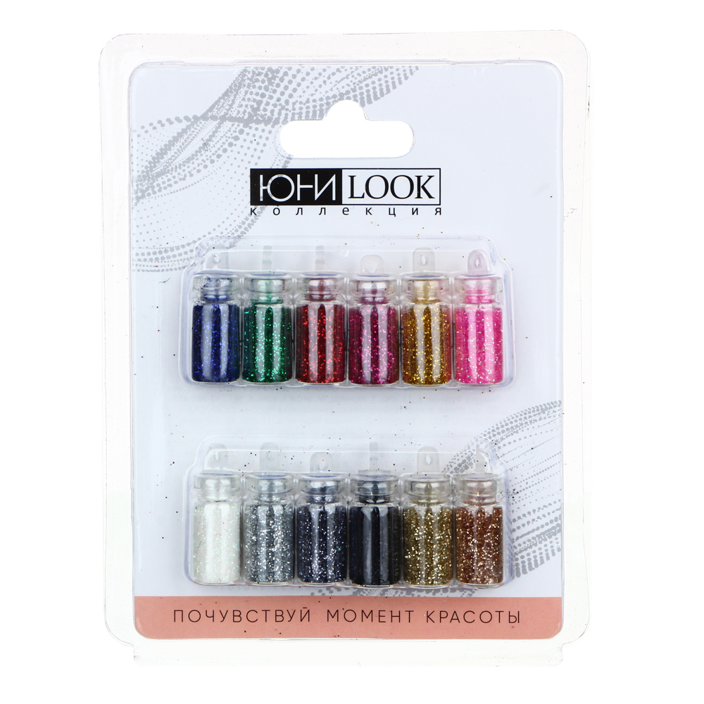 ЮНИLOOK Декор для дизайна ногтей в баночках "Блёстки", 12шт, разноцветные