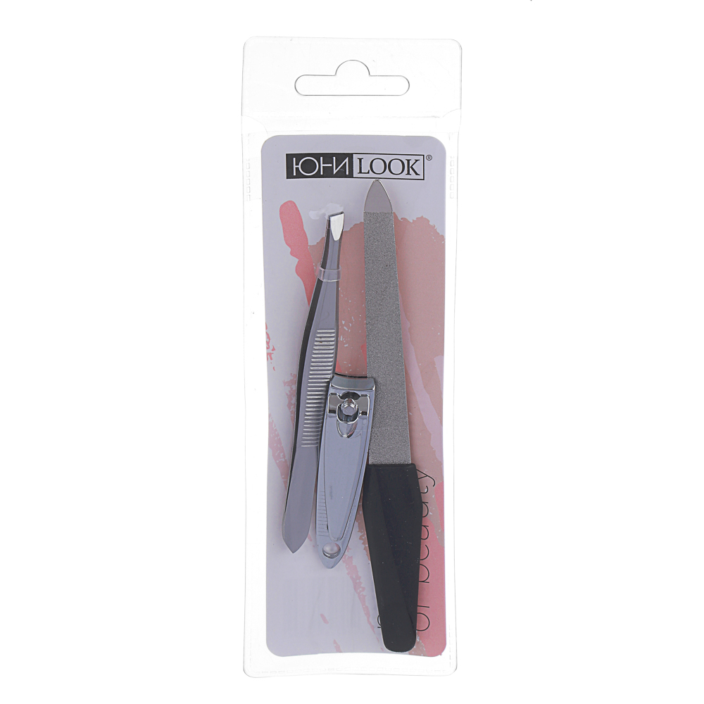 ЮНИLOOK Набор маникюрный 3 пр. (пилка металлическая, книпсер, пинцет), арт.10-7