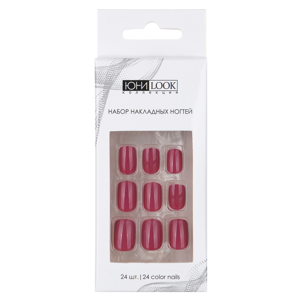 ЮНИLOOK Набор накладных ногтей 24шт + клеевые пластины 24шт, 6 цветов