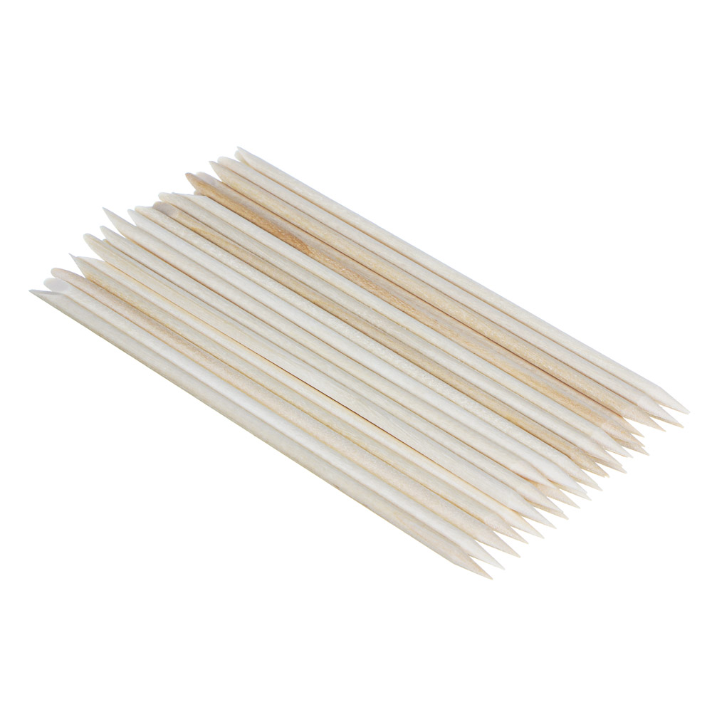 Гигиеничные одноразовые двухсторонние палочки для маникюра. Скошенный край используется для обработки кутикулы, острый край используется для очищения внутренней стороны ногтя. Материал древесины мягкий, не травмирующий ноготь.