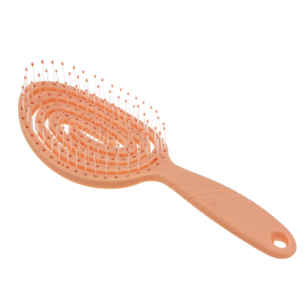 Продувная расческа из термопластичной резины создана специально для укладки волос при помощи фена. Особая конструкция корпуса расчески позволяет теплому воздуху легко проникать сквозь него, что существенно ускоряет и облегчает сушку и укладку волос. Материал расчески достаточно плотный, не боится перепада температур и бережно расчесывает волосы и массирует кожу головы.