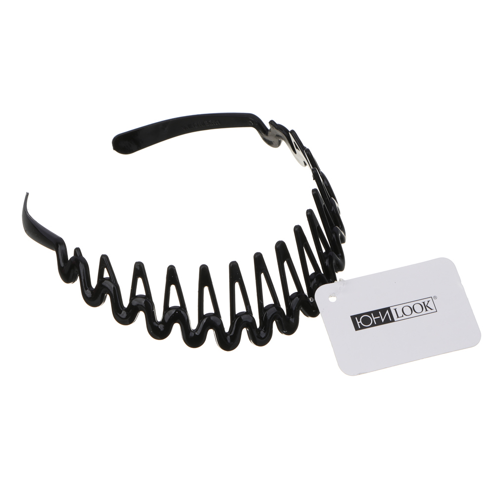 Классический черный ободок для волос ЮНИLOOK. Специальная конструкция ободка предотвращает соскальзывание, обеспечивая вам безупречное удержание волос и непревзойденный комфорт на протяжении всего дня. Он станет незаменимым помощником в вашей повседневной жизни, когда вам нужно быть уверенной в надежности каждой детали.