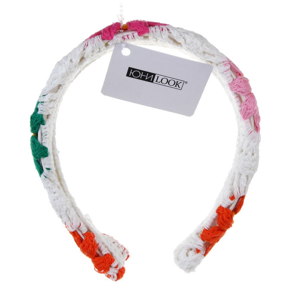 Ободок для волос ЮНИLOOK, ширина 3,5 см из пластика с декоративным вязаным декором – это эстетичный аксессуар, который поможет зафиксировать пряди, а также украсит повседневную прическу и быстро придаст волосам аккуратный вид. Может также использоваться во время выполнения косметических процедур: нанесения маски или макияжа, чтобы волосы не падали на лицо. Ободок имеет самобытный дизайн с красивой вязаной накладкой из полиэстера с причудливым и ярким цветочным орнаментом. Надежно фиксируется, не соскальзывает с головы и в то же время не стягивает и не доставляет дискомфорта. 3 дизайна в ассортименте.