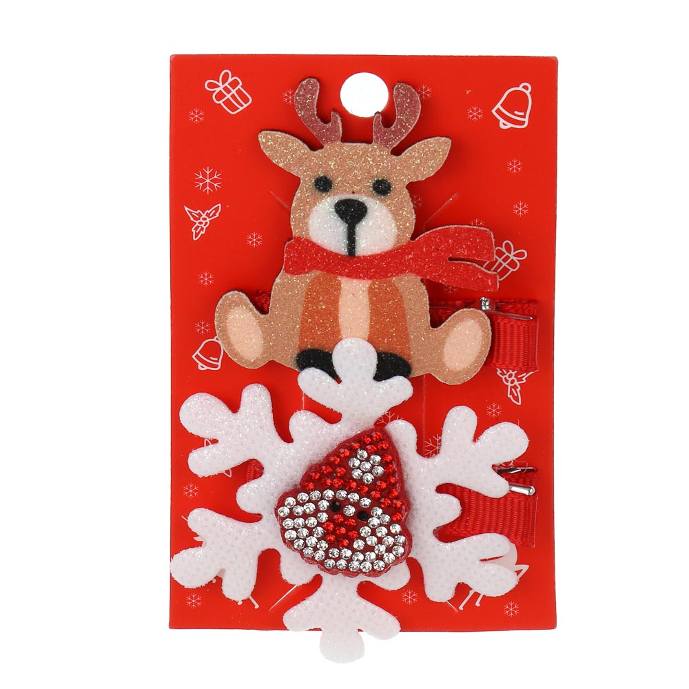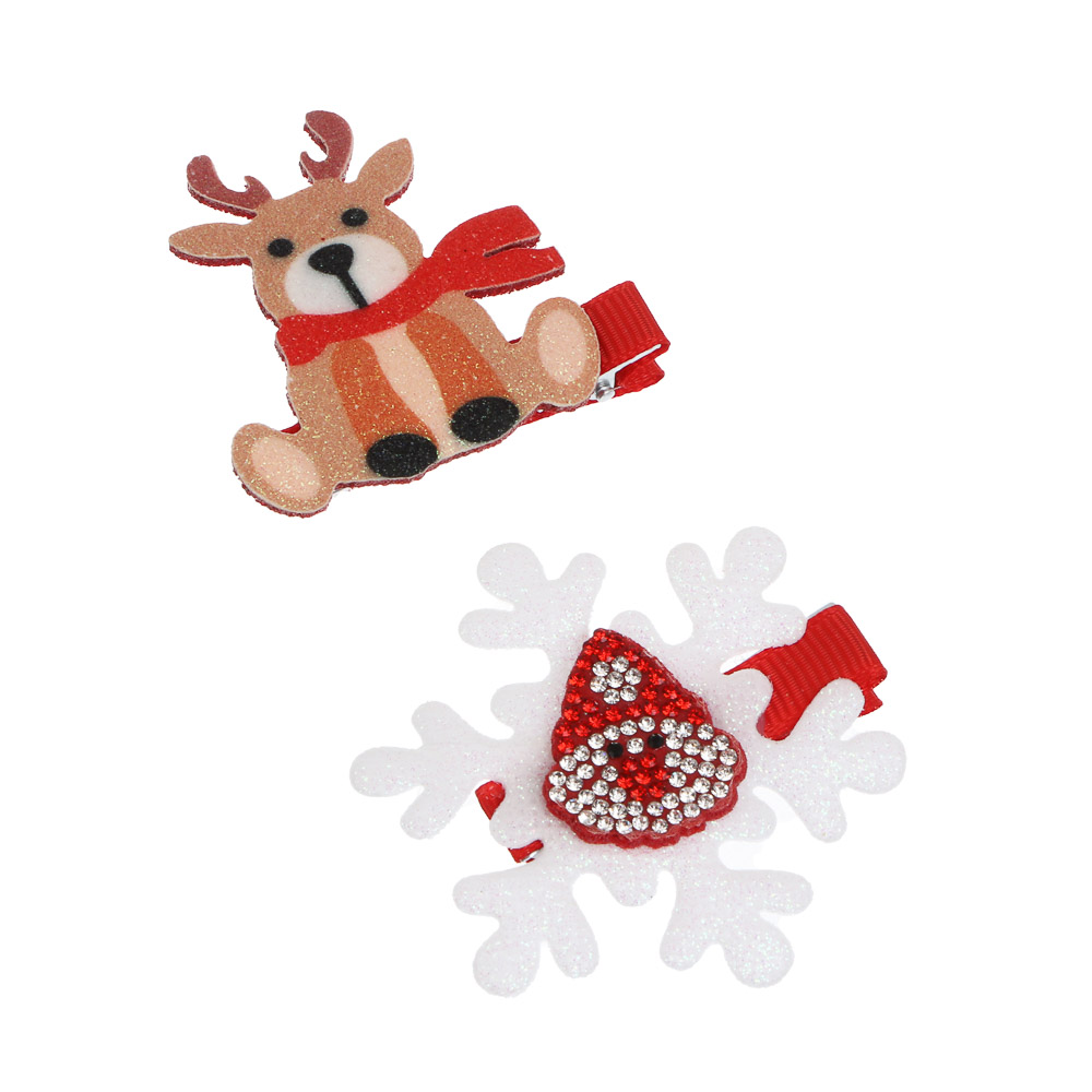 Заколка для волос 2 штуки, от ТМ ЮНИLOOK, 1-6,5 см, металл, полимер – это набор из двух прочных и практичных заколок для создания аккуратной прически всего за несколько минут. Заколки имеют тематический дизайн в новогоднем стиле, дополнят праздничный наряд для утренника или концерта. Металлическая основа обеспечивает надежный захват и фиксацию без повреждения волос и образования заломов. 6 дизайнов в ассортименте.