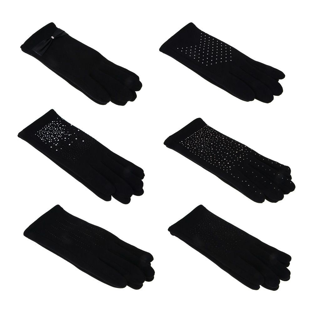 GALANTE Перчатки женские контактные, р.18-20, 50% полиэстер, 50% хлопок, черные, ОЗ25-01