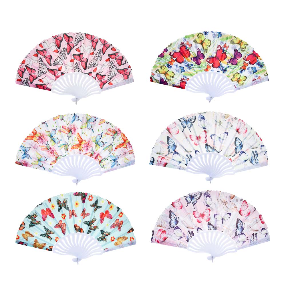 ЮНИLOOK Веер складной тканевый с рисунком бабочки, 23 см, полиэстер, пластик, 6 диз