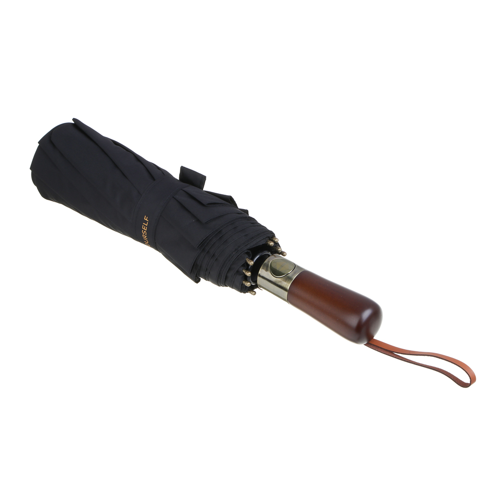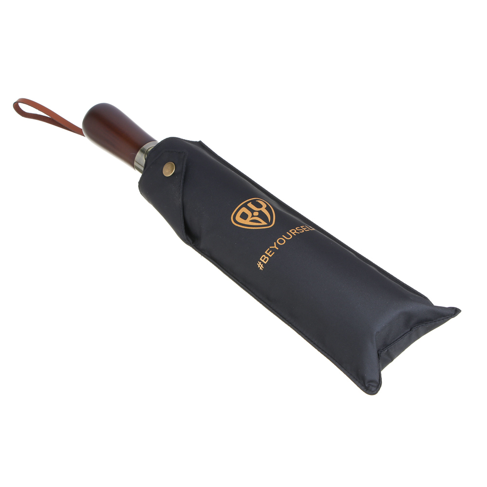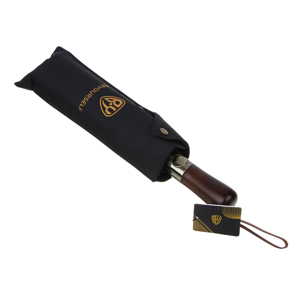 BY BEYOURSELF Зонт-автомат с деревянной ручкой, полиэстер, пластик, сплав, d110см, 10 спиц, черный