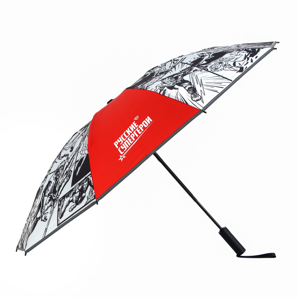 BY Русские Супергерои Зонт-автомат со светоотражающей лентой с ручкой soft touch, d100см, 10 спиц