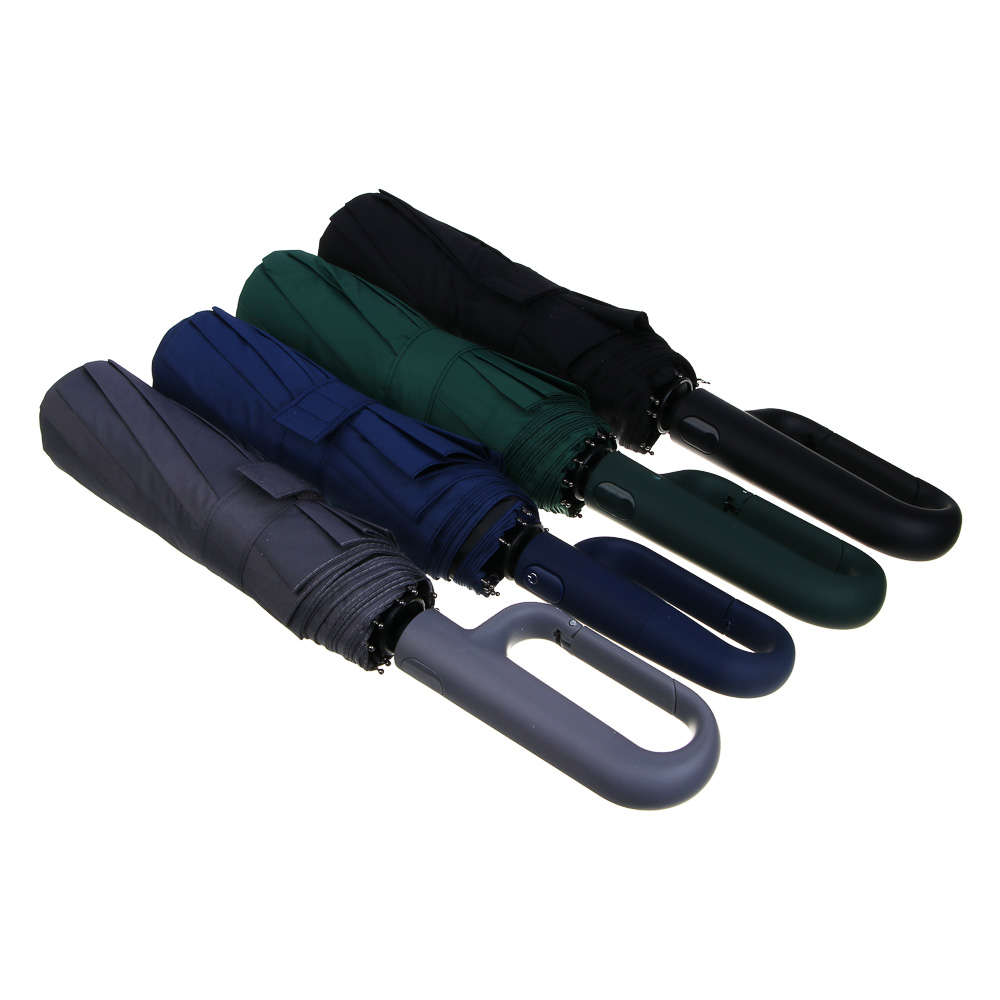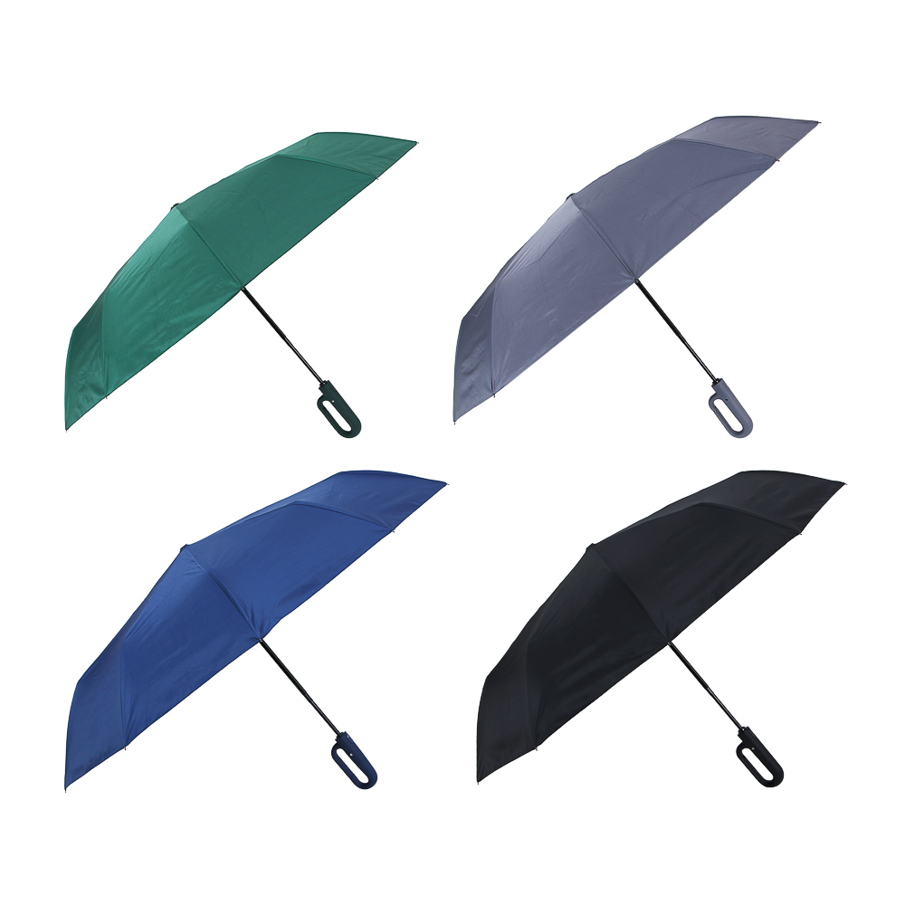 Зонт автомат, усиленный, ручка-карабин, стекловолокно, металл, пластик, ПЭ, винил, d103см, 10 спиц