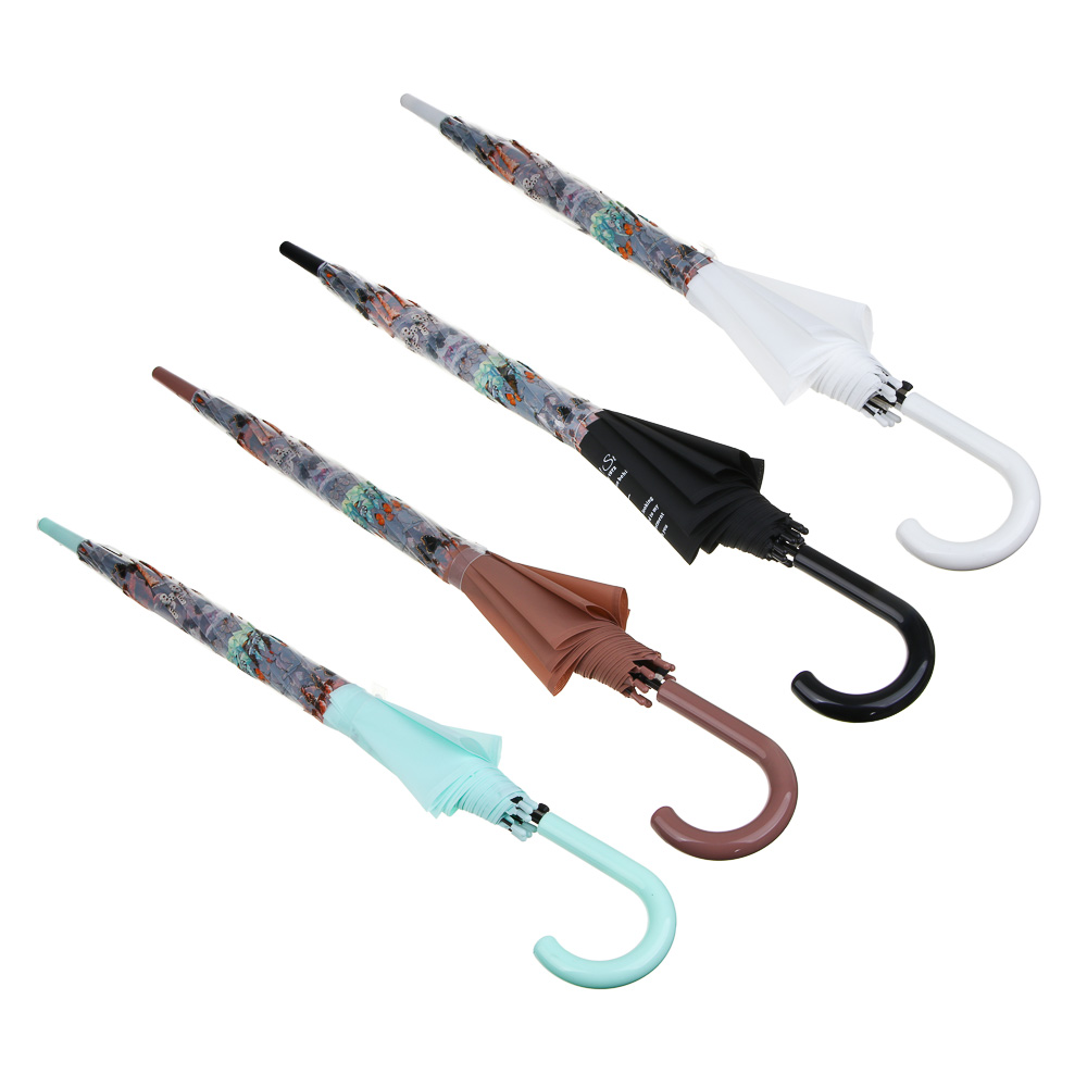 Зонт-трость, металл, пластик, ПВХ, d100см, 8 спиц, 4 цвета
