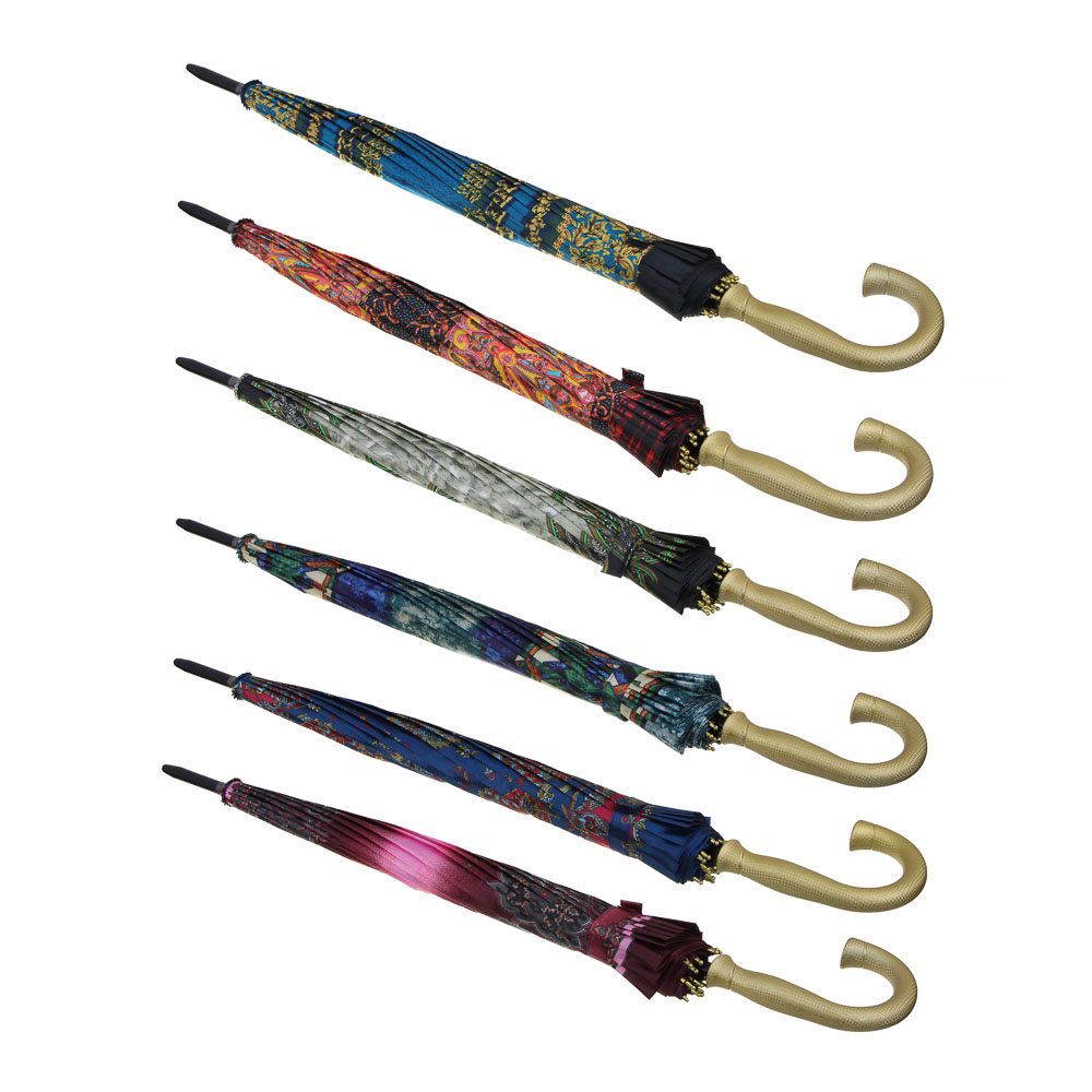 Зонт-трость женский, металл, пластик, полиэстер, 55 см, 16 спиц, 6 дизайнов, RST124406