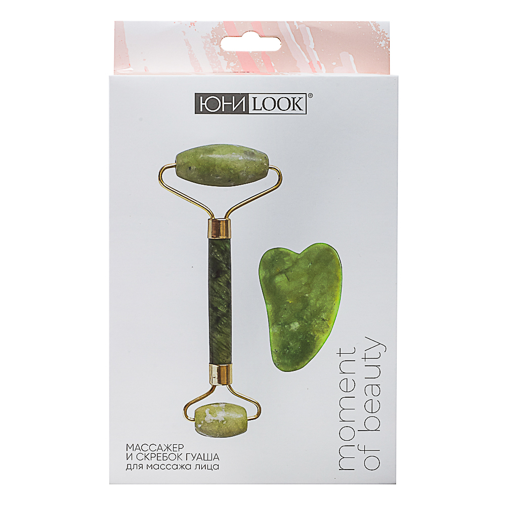 ЮL Массажер для лица 14x5,5см и скребок гуаша для массажа 7х4,4см, металл, мыльный камень
