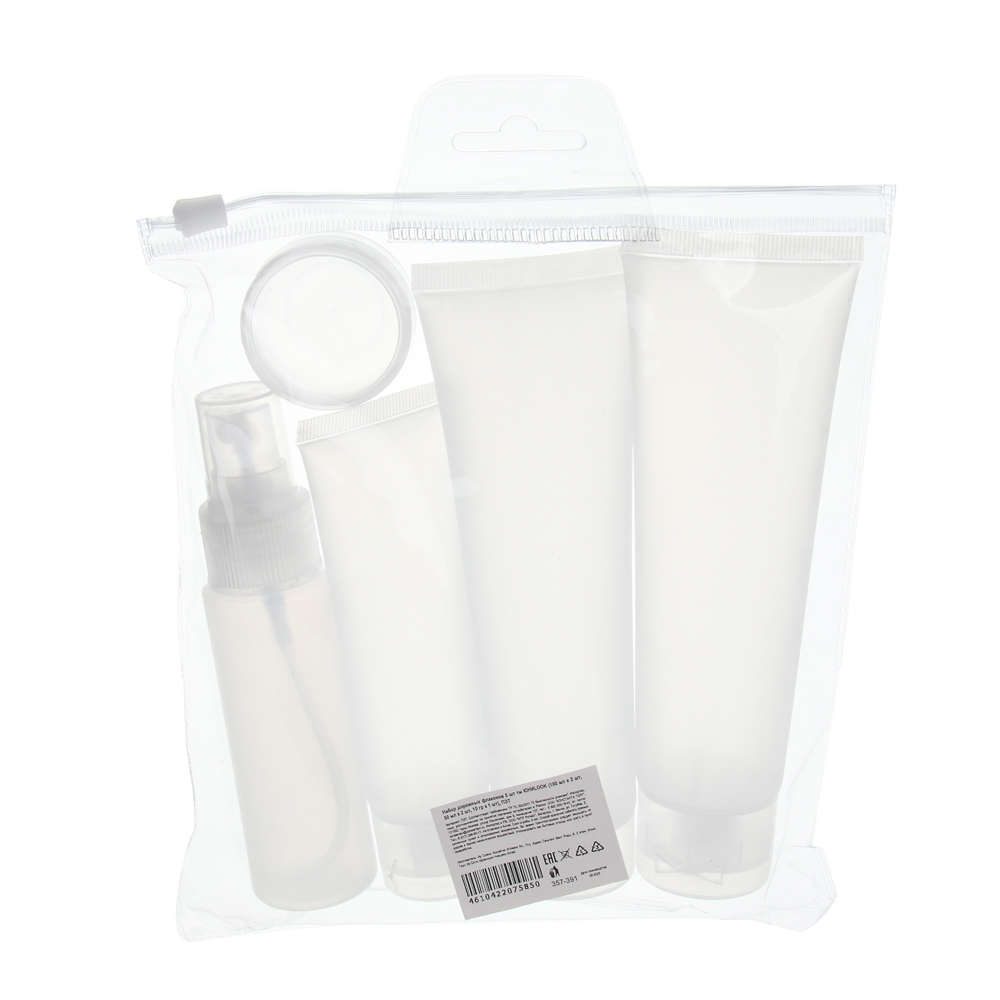 Набор дорожных флаконов 5 шт тм ЮНИLOOK (100 мл х 2 шт, 50 мл х 2 шт, 10 гр х 1 шт), ПЭТ